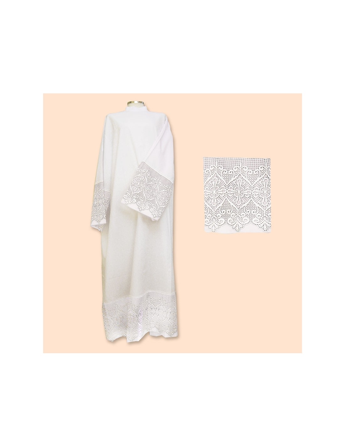 Alba Canonigo Con Puntilla Cruz Dentro Rombo Mangas Y Pies T145