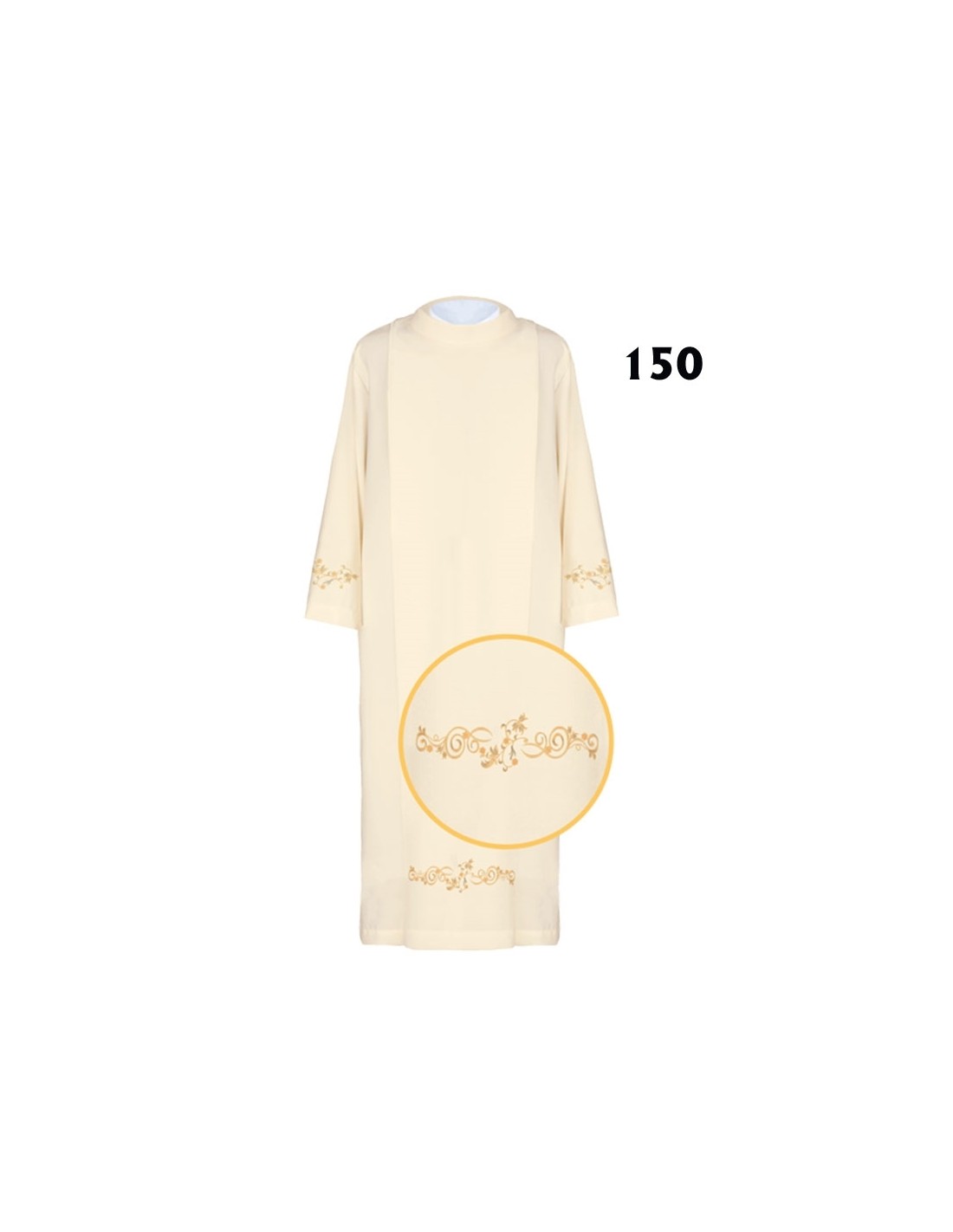 Alba Lisa Cruda Cuello Redondo Cenefa Flores Doradas Mangas Y Bajo T-50