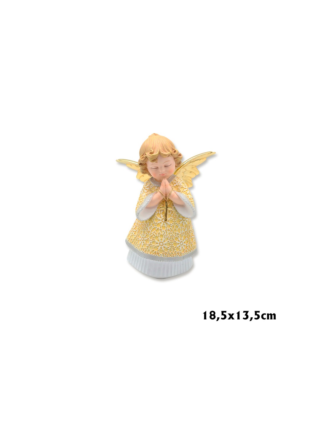 Angel Res Manos Con Cruz 18. 5Cm Pp Vestido Dorado Bajo En Blanco Alas Doradas