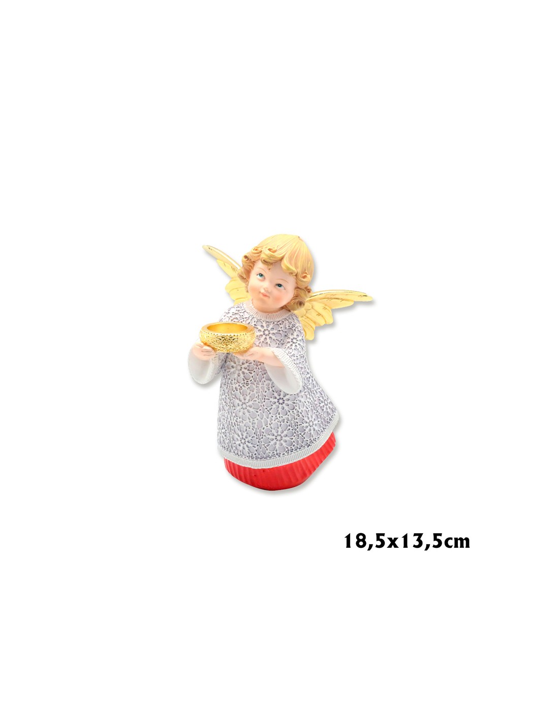 Angel Res Con Cuenco En Las Manos 18. 5Cm Pm Vestido Blanco Bajo En Rojo Alas Doradas