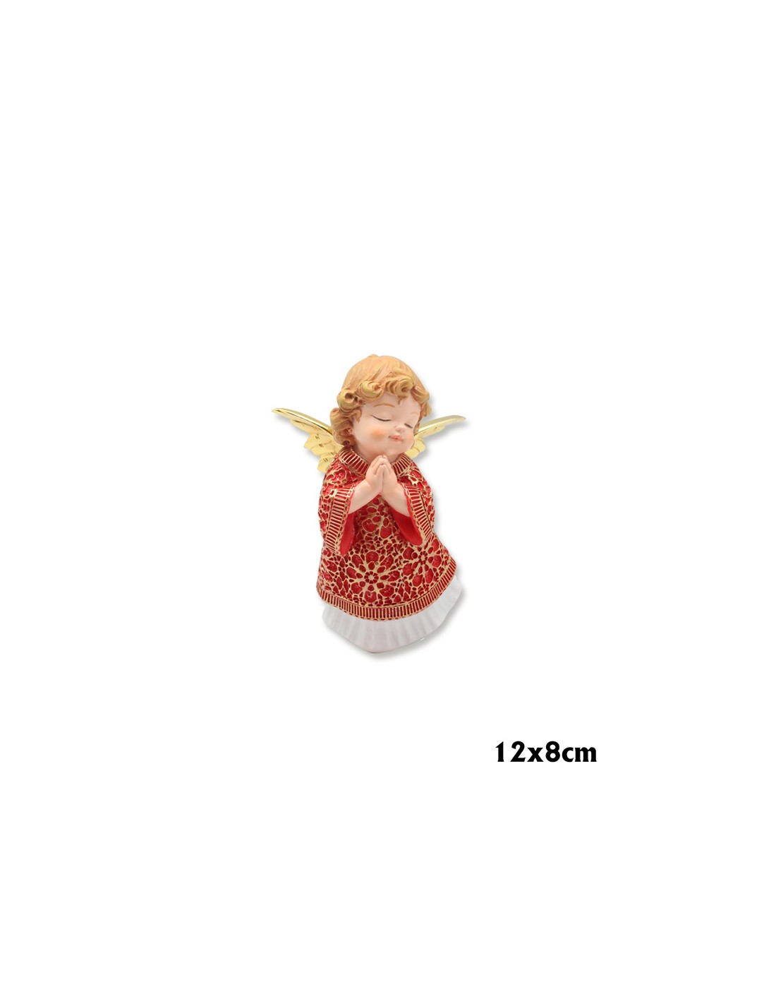Angel Res Manos Juntas 12Cm Pk Vestido Rojo Bajo En Blanco Alas Doradas