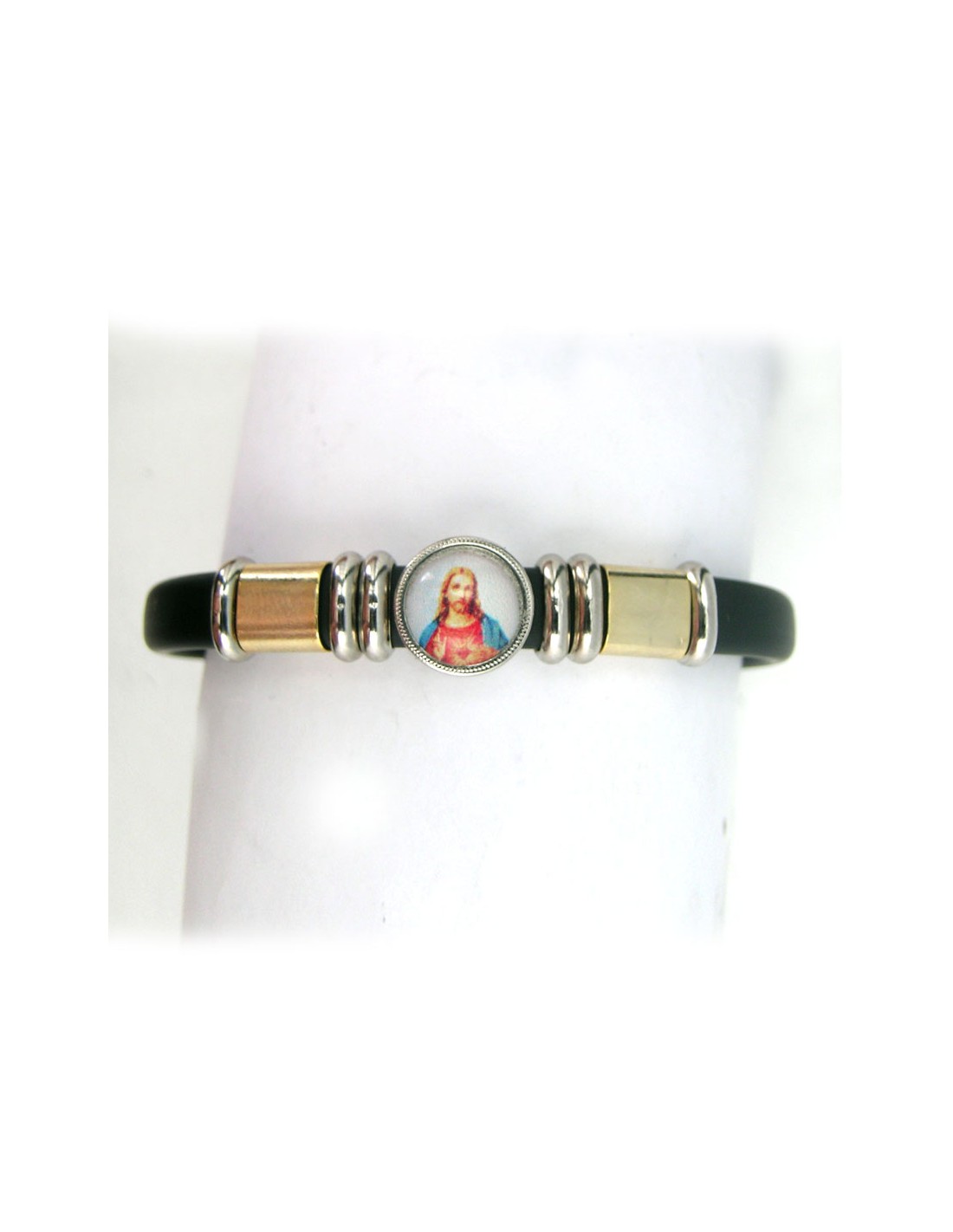Pulsera Caucho Con Adornos Metal Bicolor Y Foto Resina Al Centro
