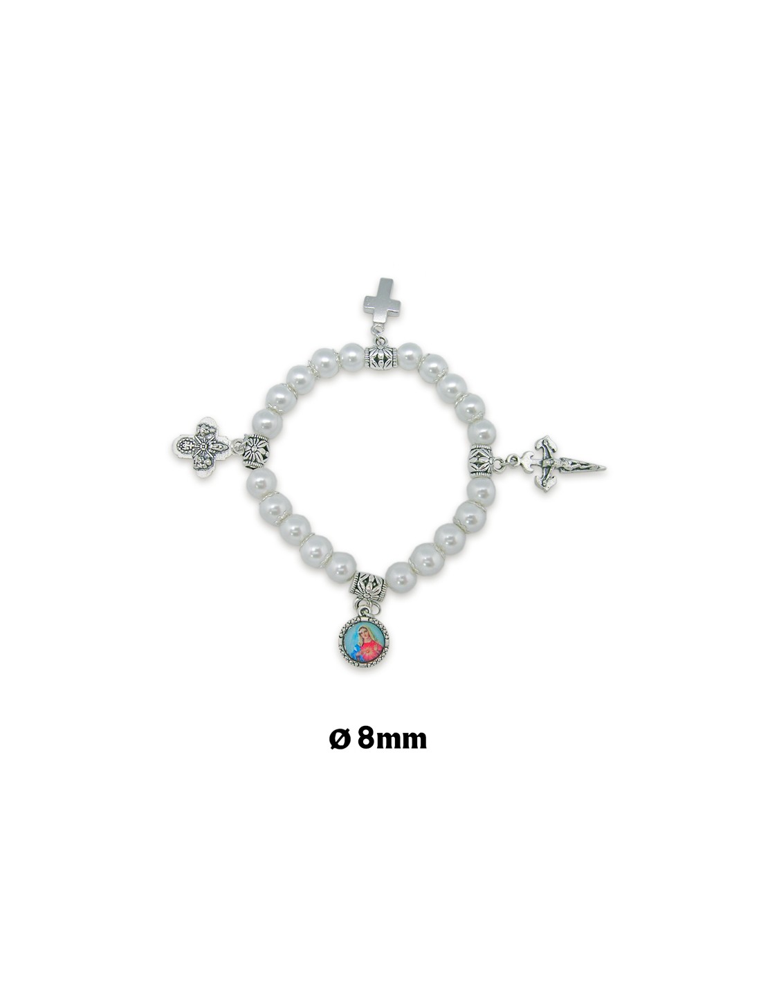 Pulsera Elastica Blanca 8Mm Con Cruces Y Medalla Para Personalizar