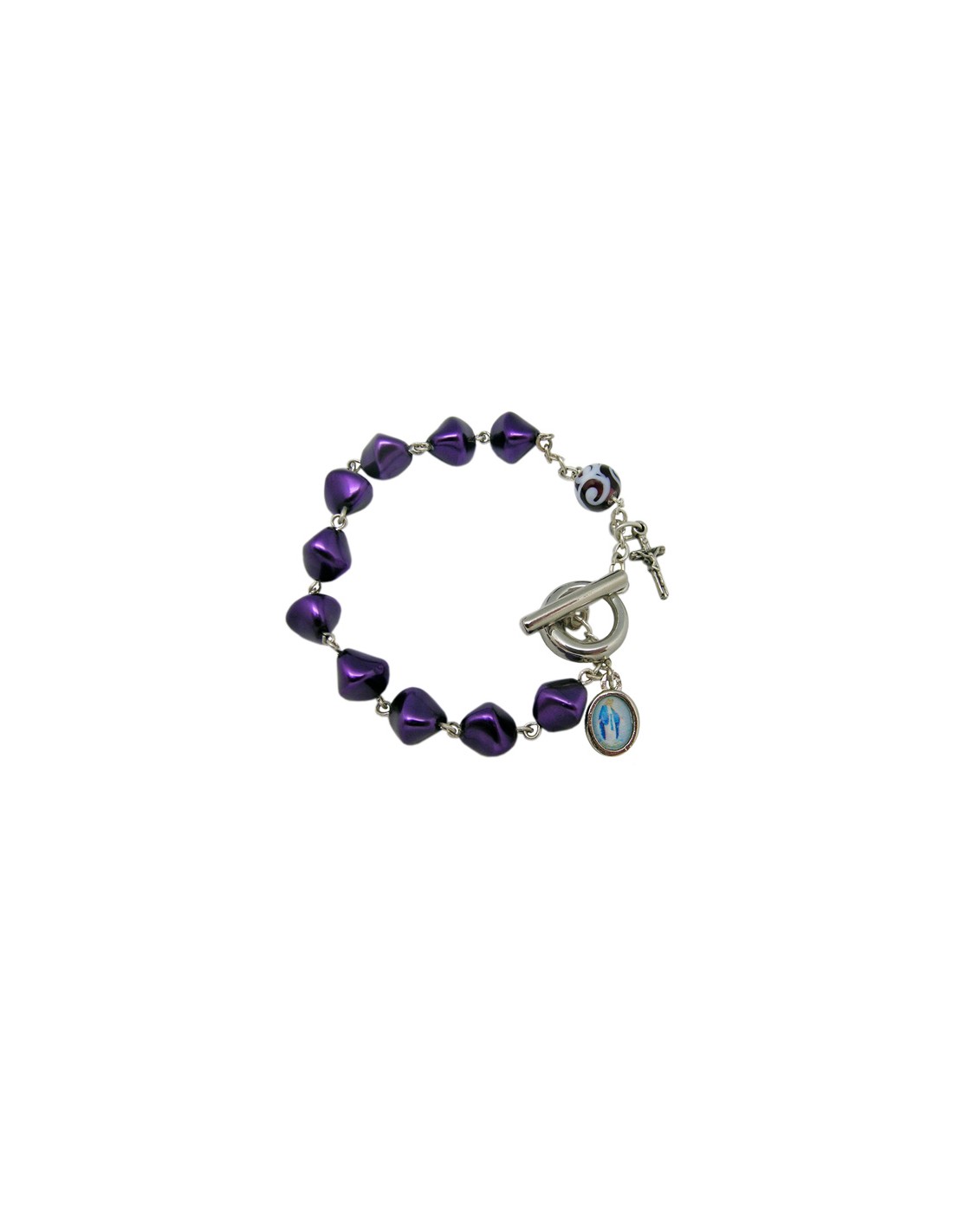 Pulsera Brazalete Imitacion Perla Rombo Violeta Pater Con Flor Y Cierre Joy