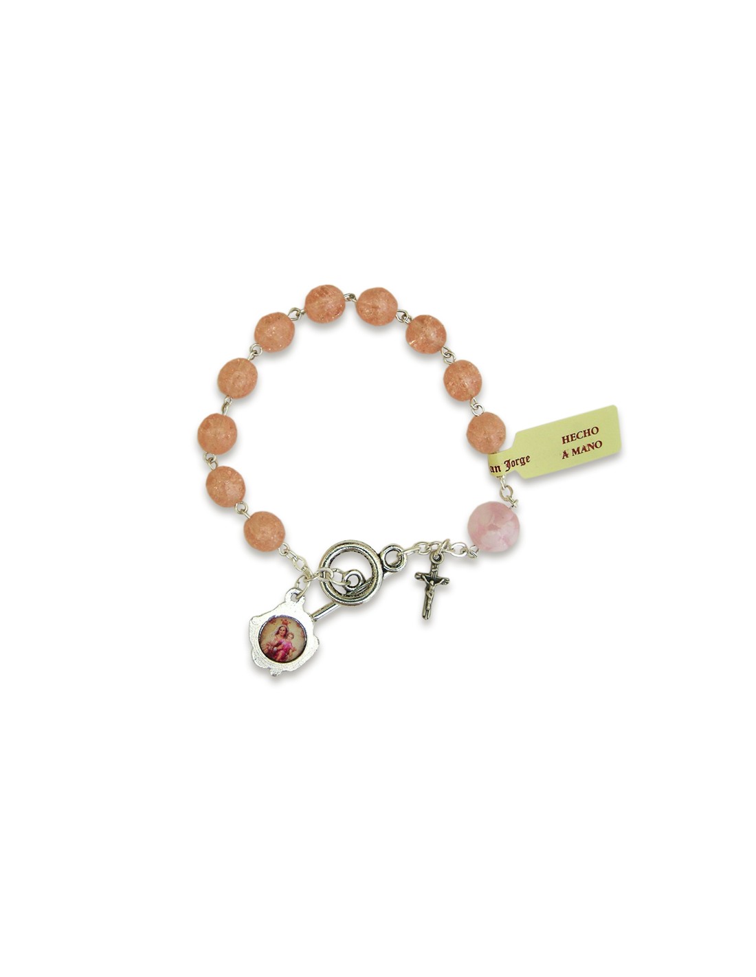 Pulsera Brazalete Cristal Cuarteado 8Mm Rosa Con Cierre Joy Y Pater De 10Mm