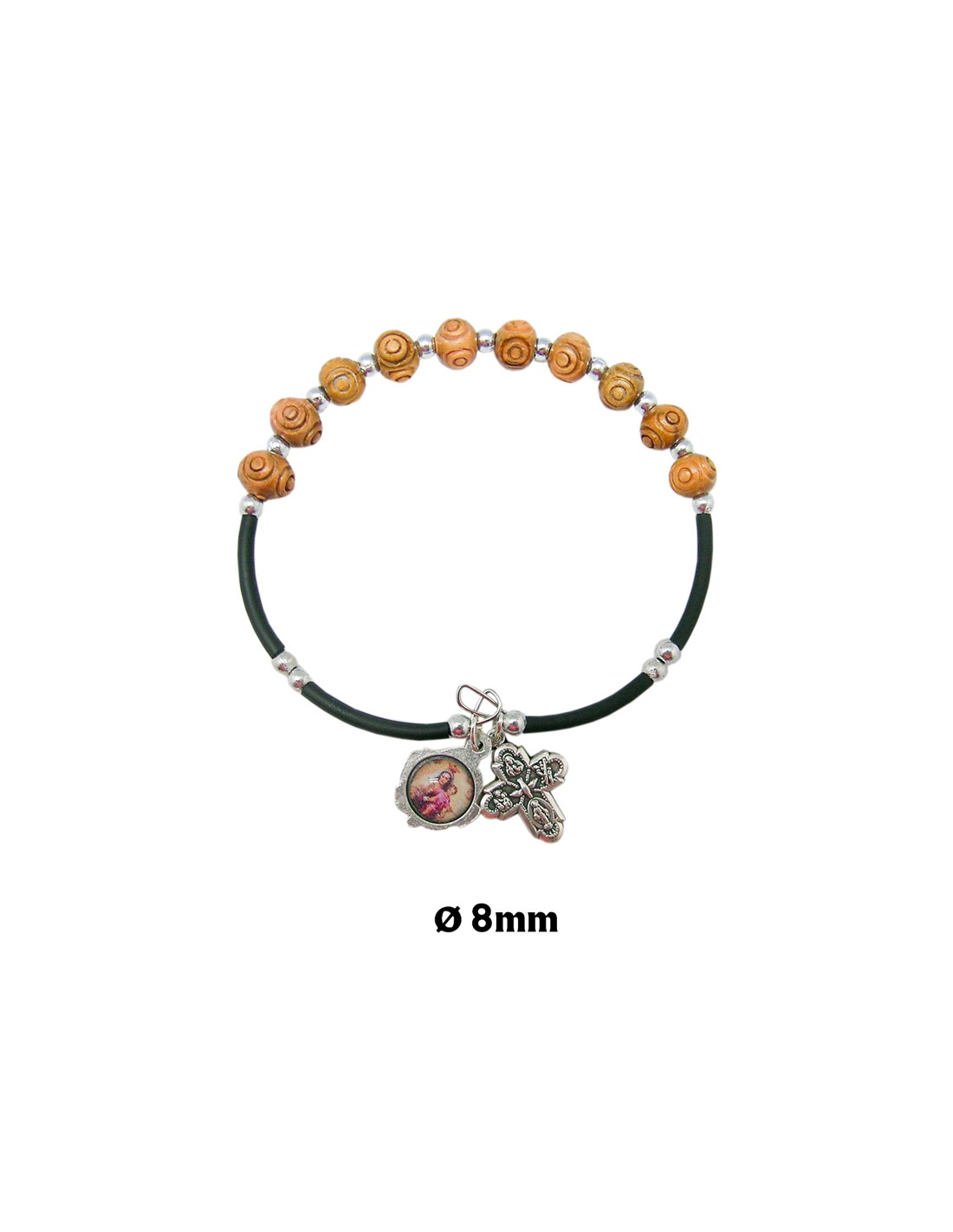 Brazalete Madera Redonda Trabajada Con Caucho Y Medalla