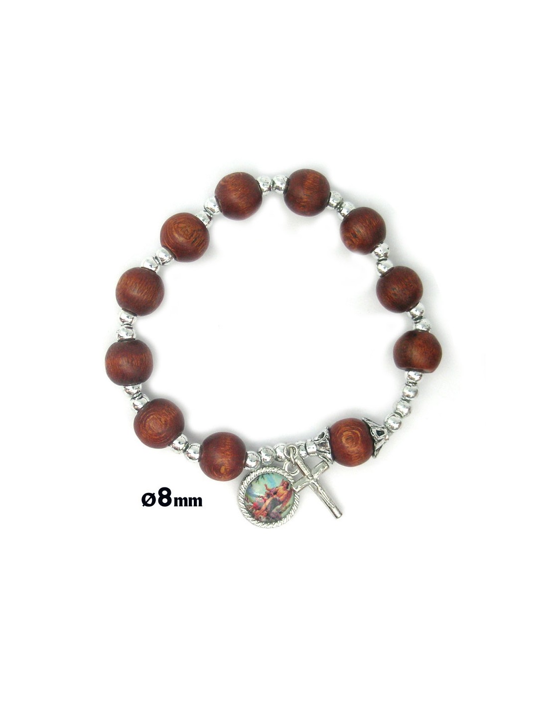 Pulsera Elastica Madera Redonda 8 Mm Con Bolitas Plateadas