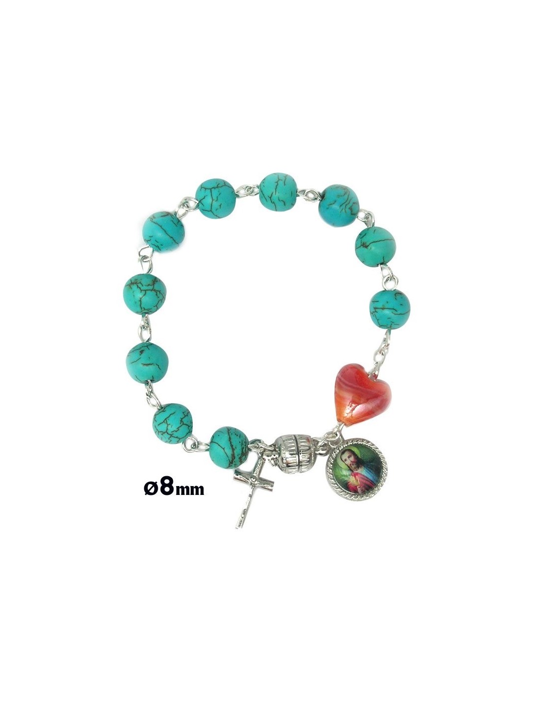 Rosario Brazalete Cristal 8Mm Azul Piedra Corazon Con Cierre Magnetico