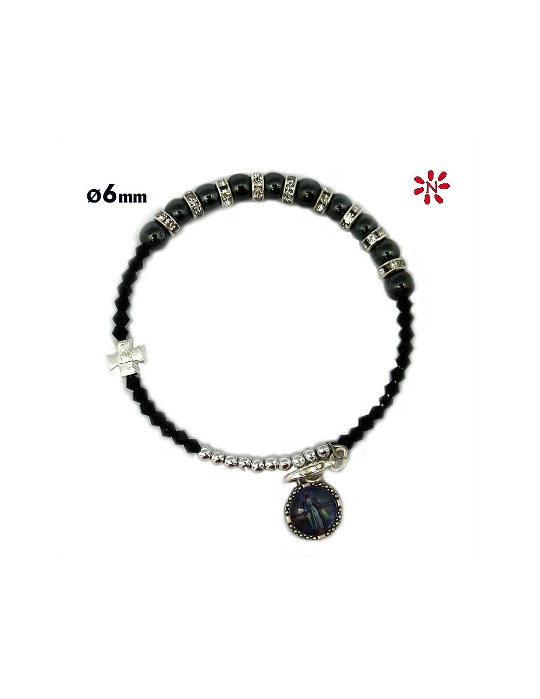 Brazalete Rigido 6Mm Disco Zirconitas Con Ematite Y Rombos Negros