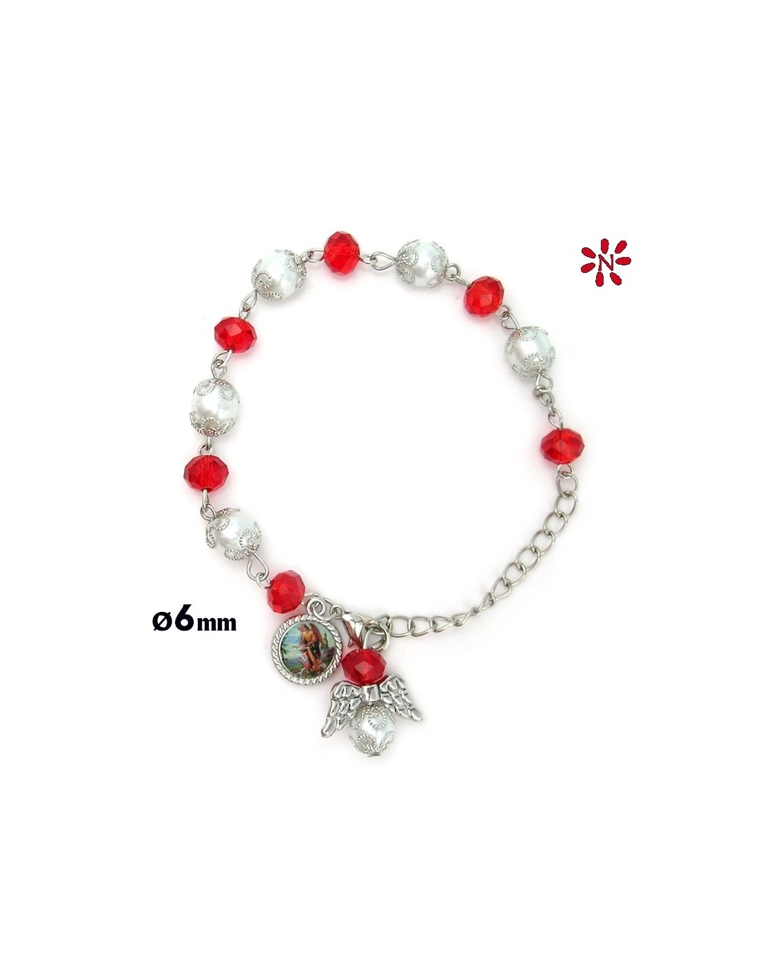Brazalete Cristal Tallado Rojo Y Perlas 6Mm Con Angelito Final