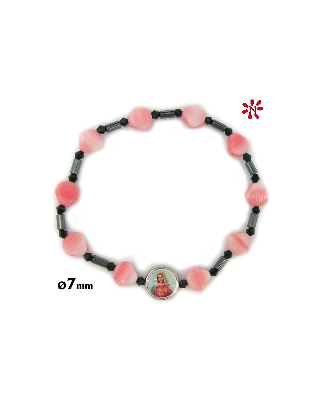 Brazalete Cristal Conchas Rosas 7Mm Elastico Con Ematite