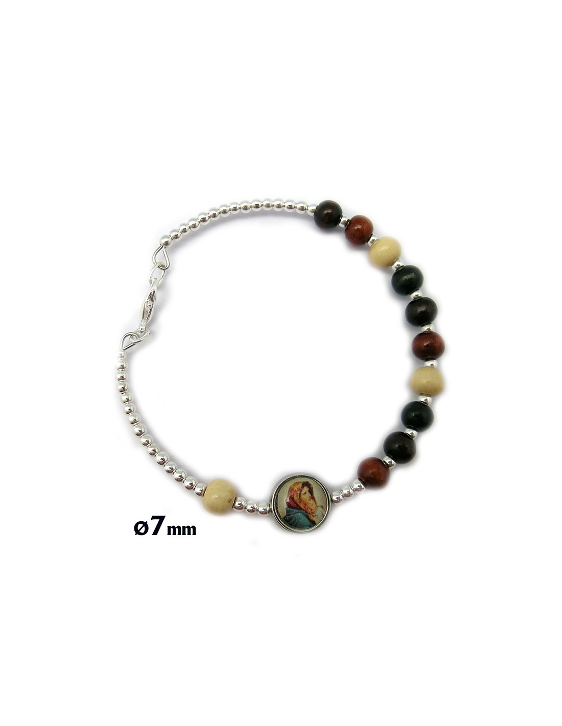 Pulsera Rigida Bola 7Mm Tonos Marr?n Madera Con Cierre Plateado