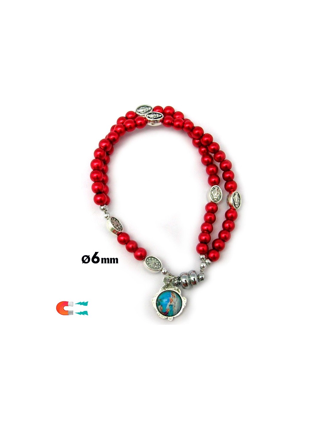 Pulsera Rosario Cristal Liso Rojo 5Mm Paters Medalla Milagrosa Cierre Magnetico