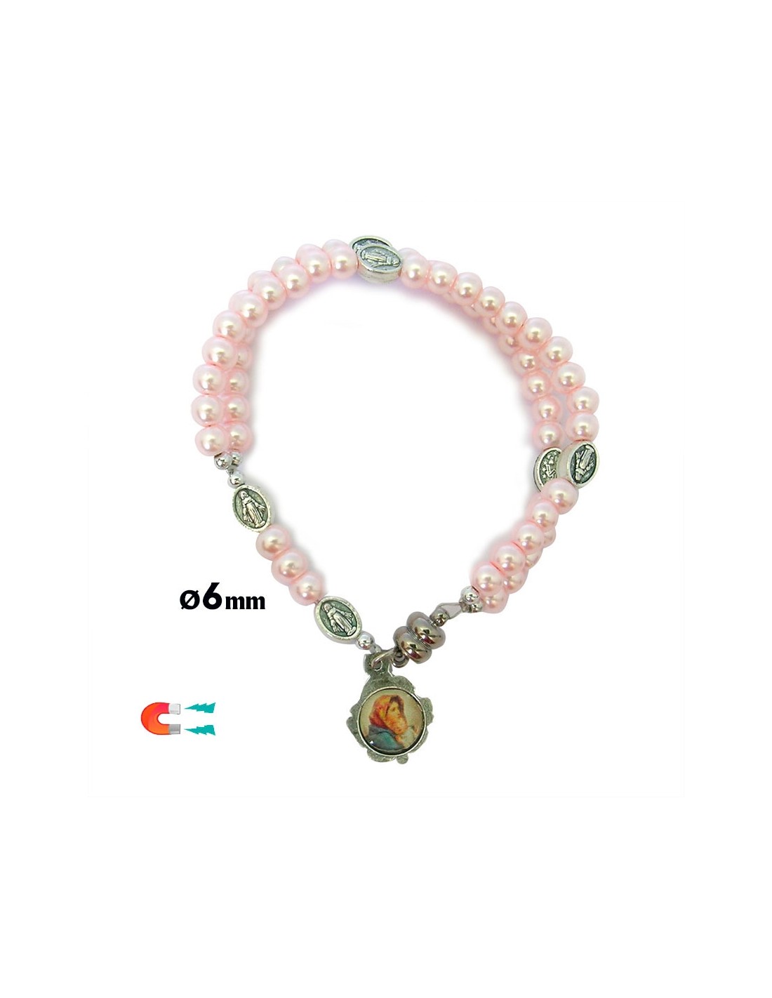 Pulsera Rosario Cristal Liso Rosa 5Mm Paters Medalla Milagrosa Cierre Magnetico