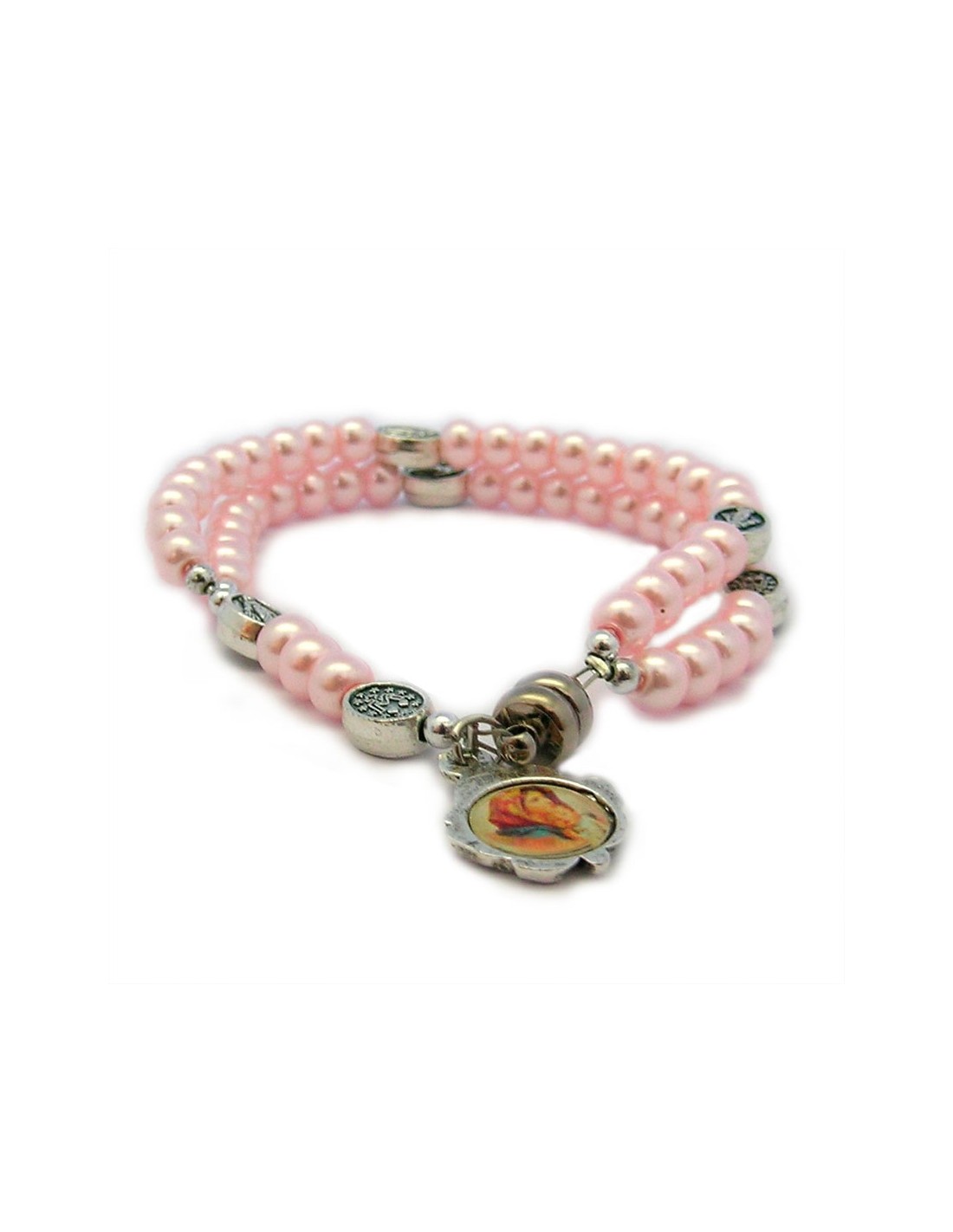 Pulsera Rosario Cristal Liso Rosa 5Mm Paters Medalla Milagrosa Cierre Magnetico
