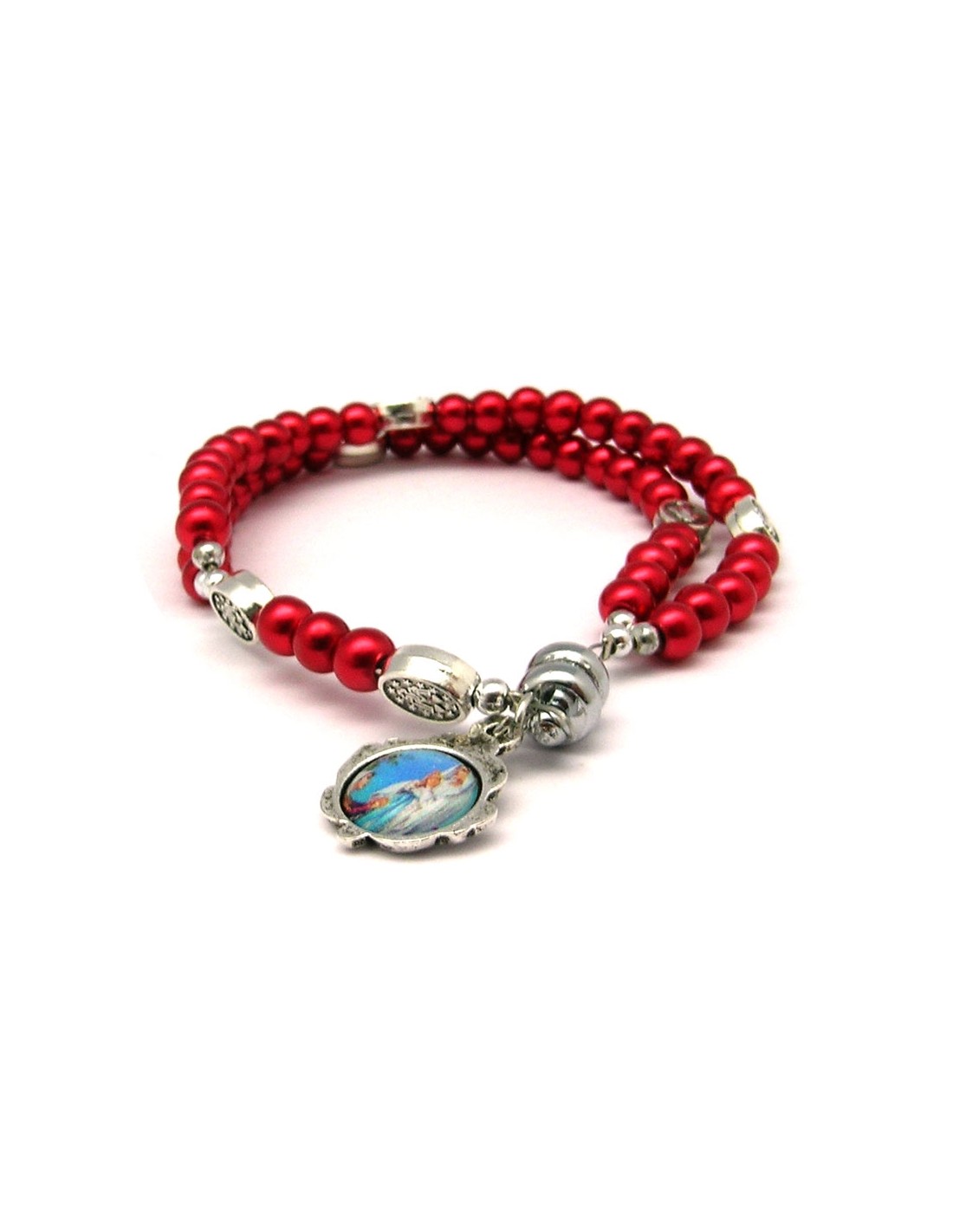 Pulsera Rosario Cristal Liso Rojo 5Mm Paters Medalla Milagrosa Cierre Magnetico