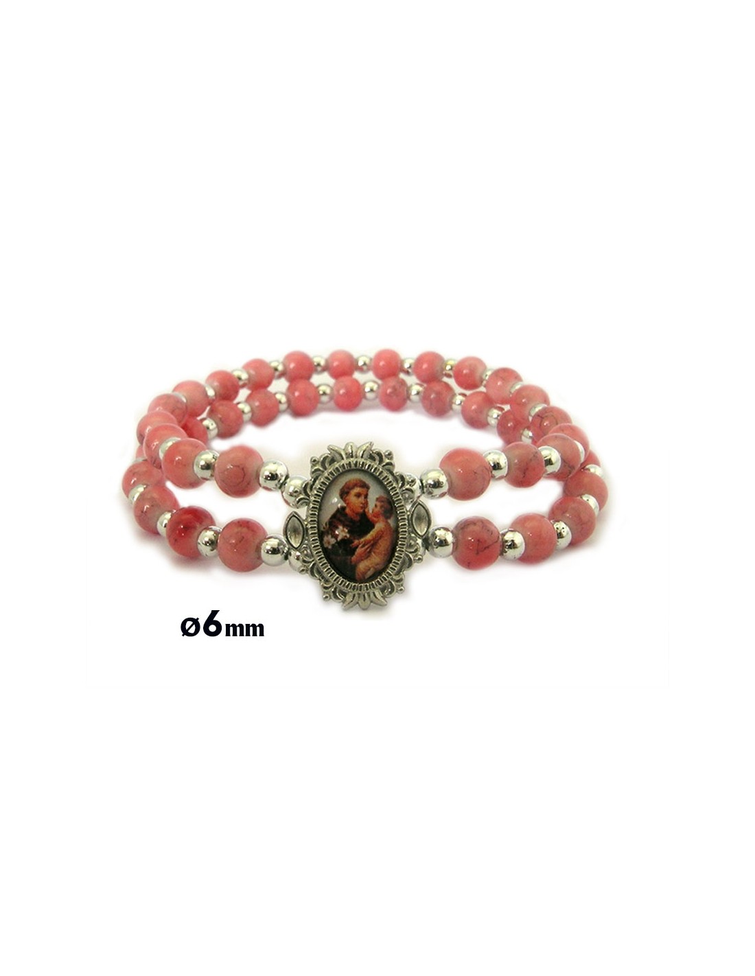 Pulsera Cristal Elastica Doble Rosa 6Mm Elastica Bolita Niquel Y Centro Con Foto
