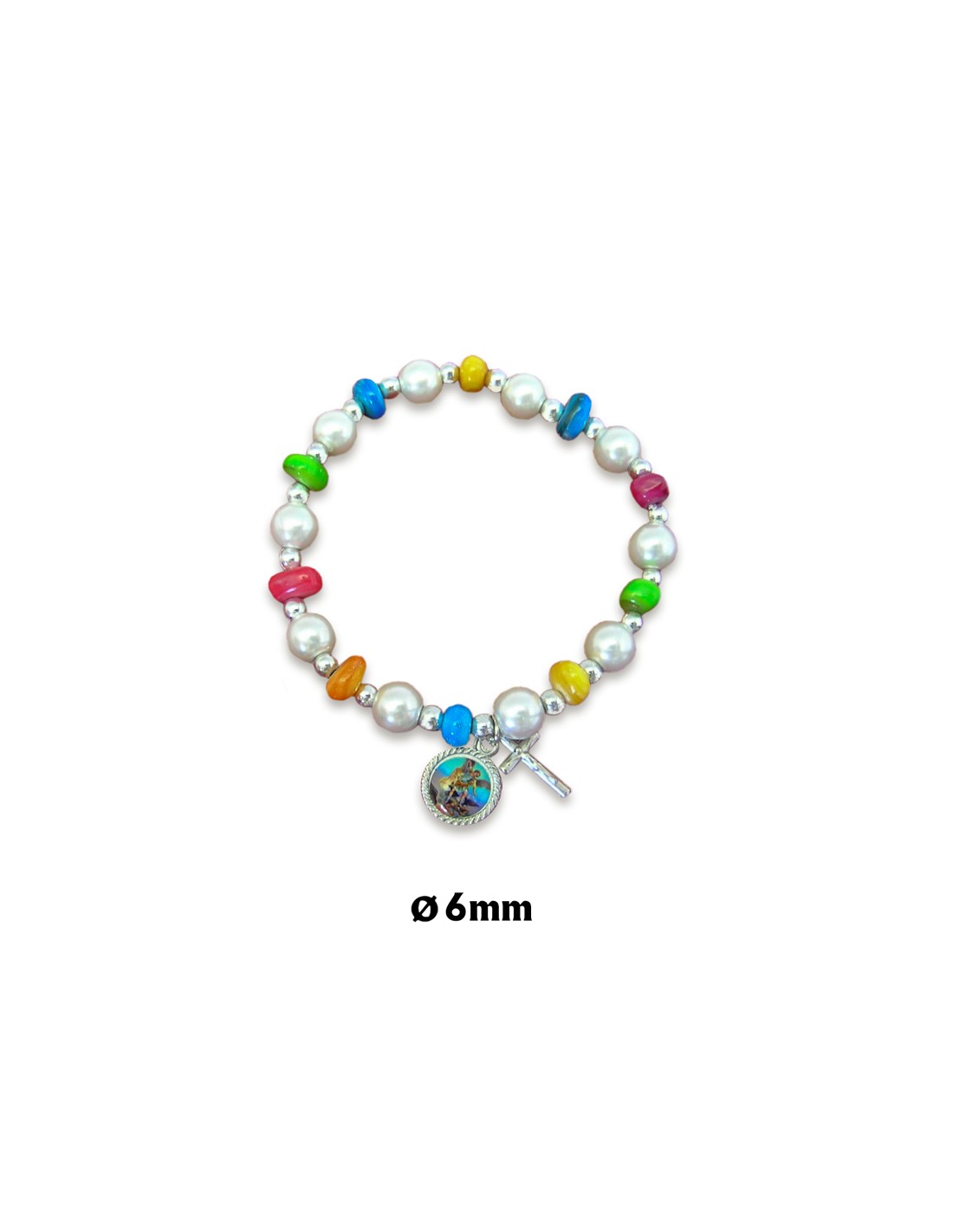 Pulsera Cristal Elastica Perlas Cristal 8Mm Y Discos Multicolor