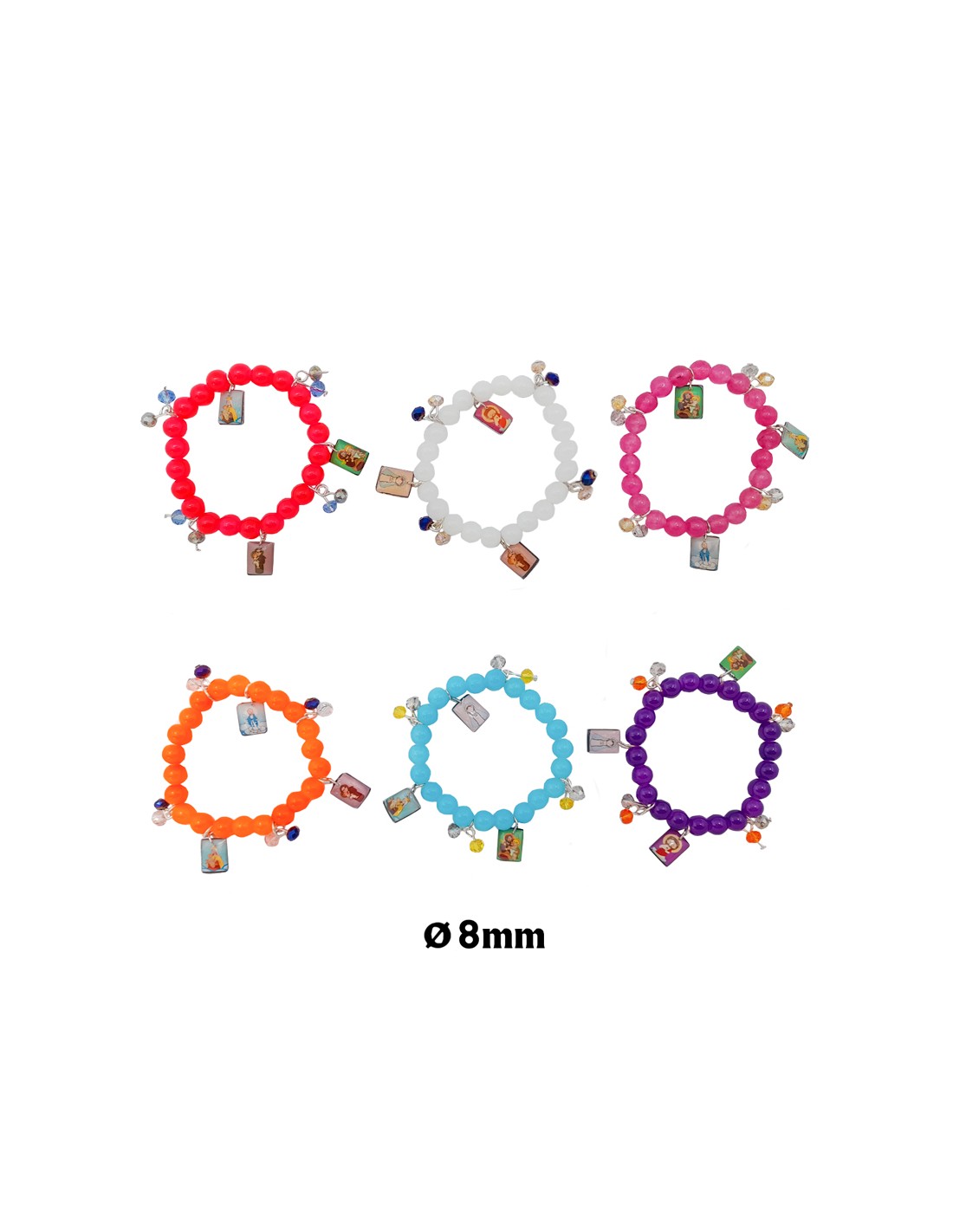 Pulsera Infantil Elastica Plastico Colores Surtidos Con Escapularios