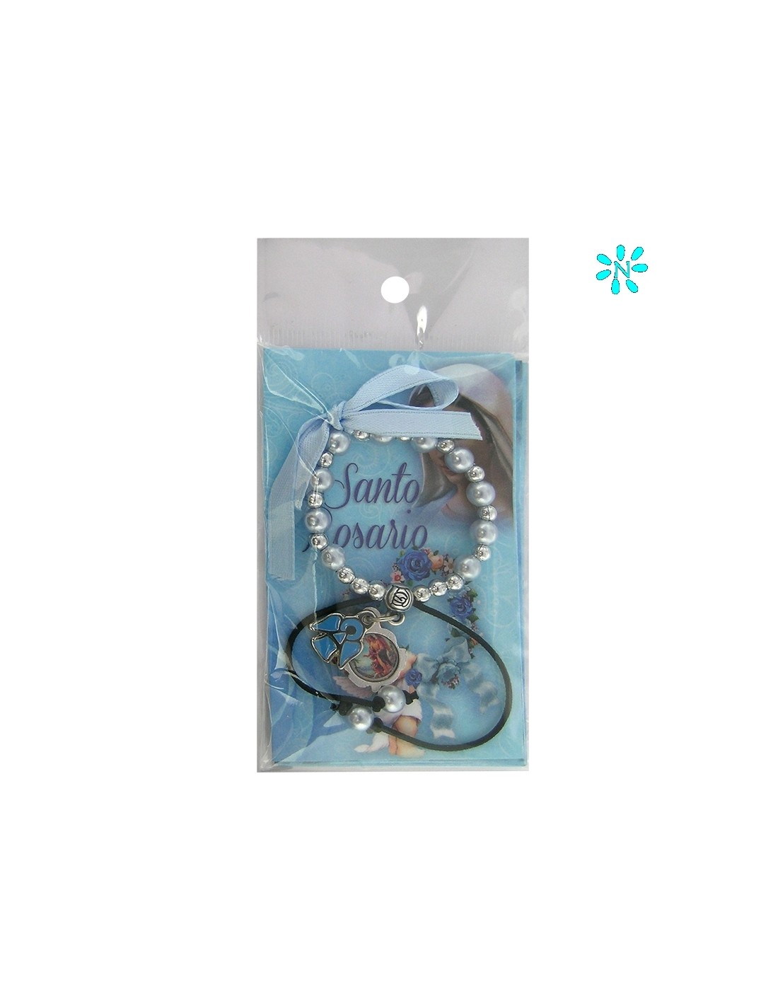 Pulsera Elastica Santo Rosario Bola 6 Mm Con Lazo Azul Y Angelito