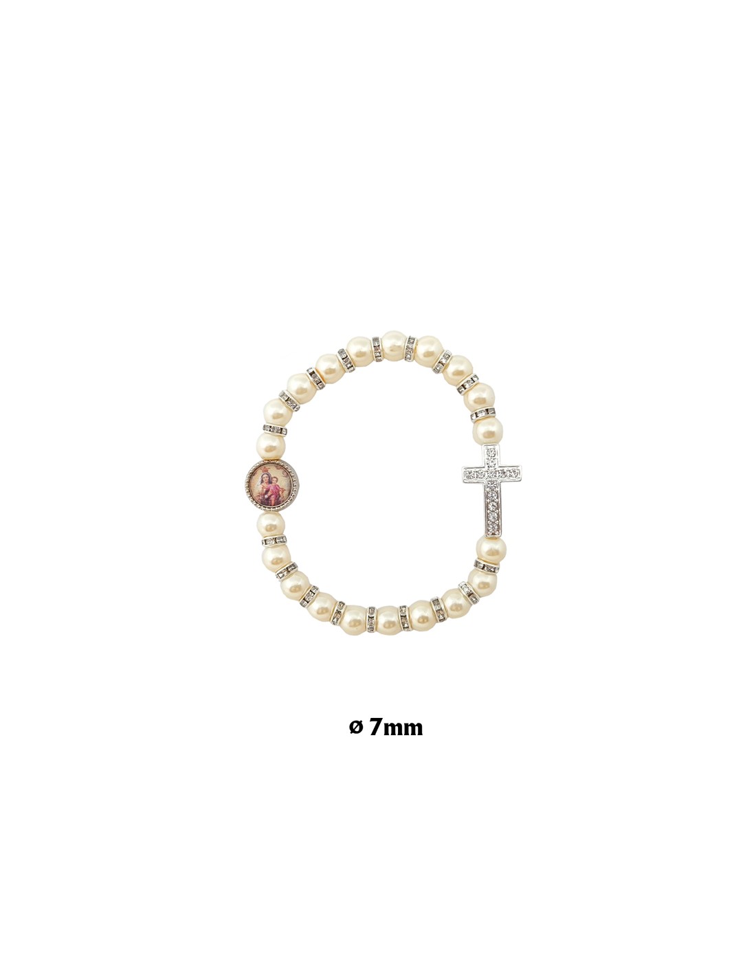 Pulsera Elastica Bola 7 Mm Imitacion Perla Con Cruz Brillante