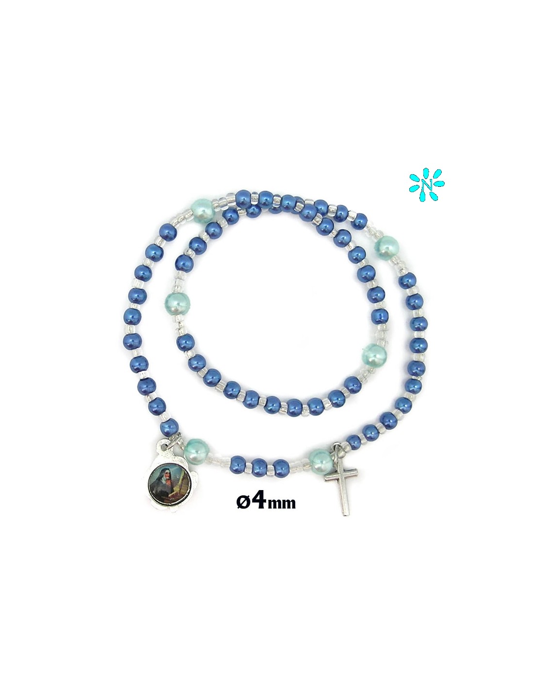 Pulsera Rosario Elastica Plastico Liso Azul 4Mm Con Paters 6Mm