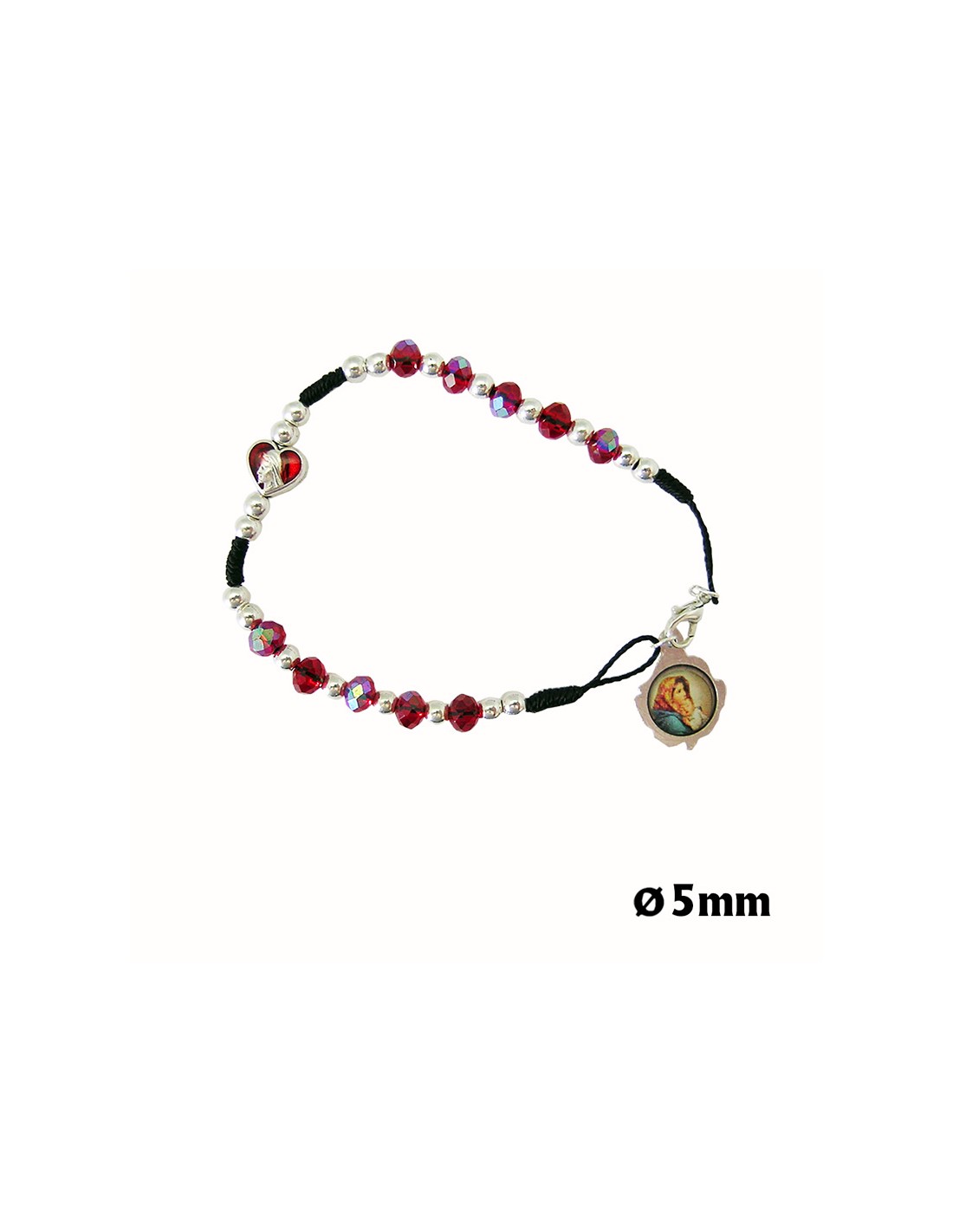 Brazalete Cristal Bola Tallada Corazon De Maria Rojo