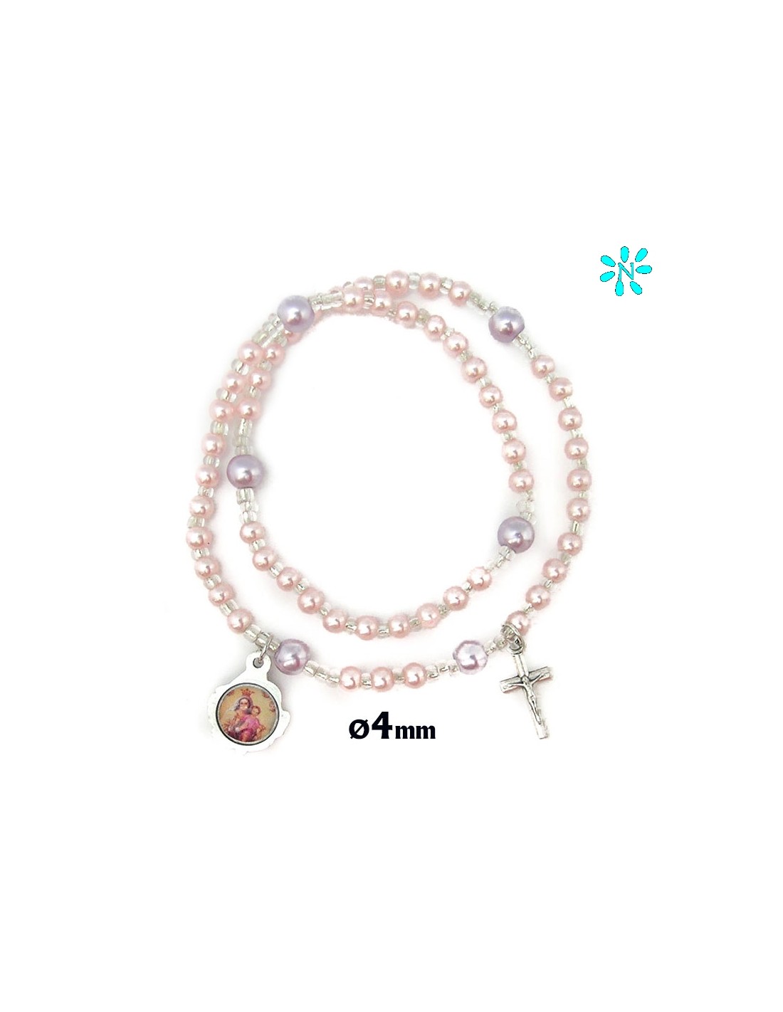 Pulsera Rosario Elastico Plastico Liso Rosa 4Mm Con Paters 6Mm