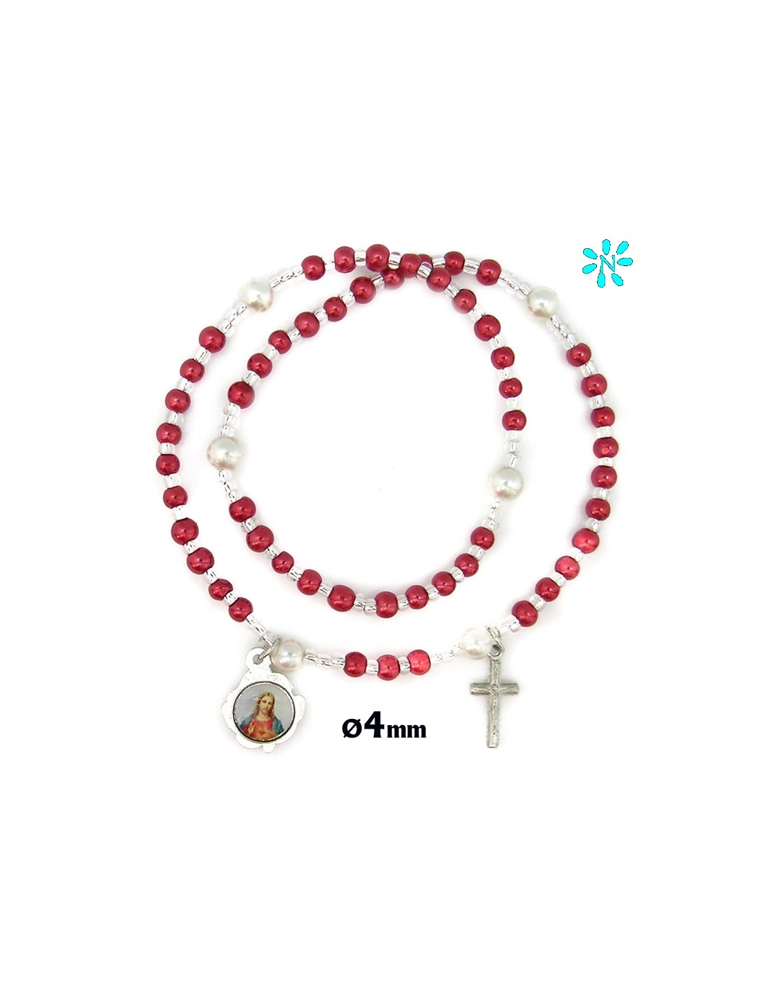 Pulsera Rosario Elastico Plastico Liso Rojo 4Mm Con Paters 6Mm