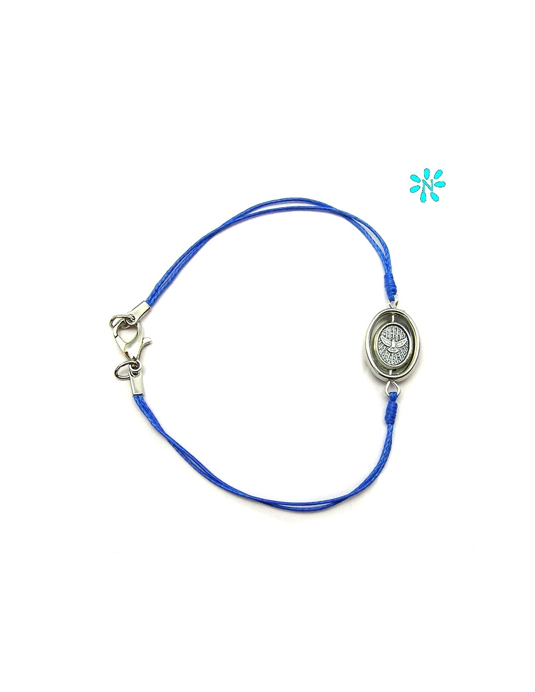 Pulsera Sagrada Familia Y Espiritu Santo Cordon Fino Azul Centro Giratorio