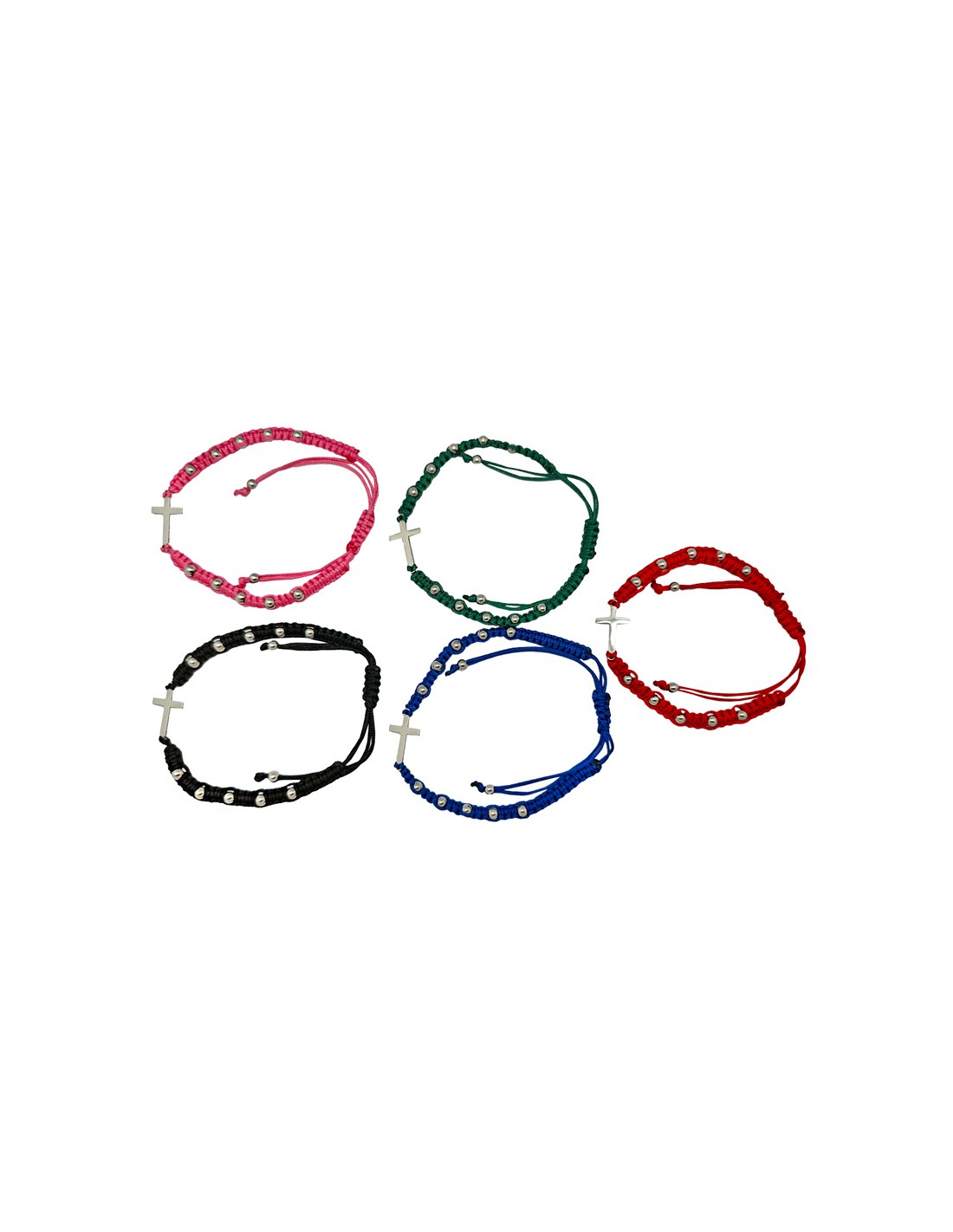 Pulsera Cuerda Trenzada Con Cruz Central Acero Y Bolitas Colores Surtidos