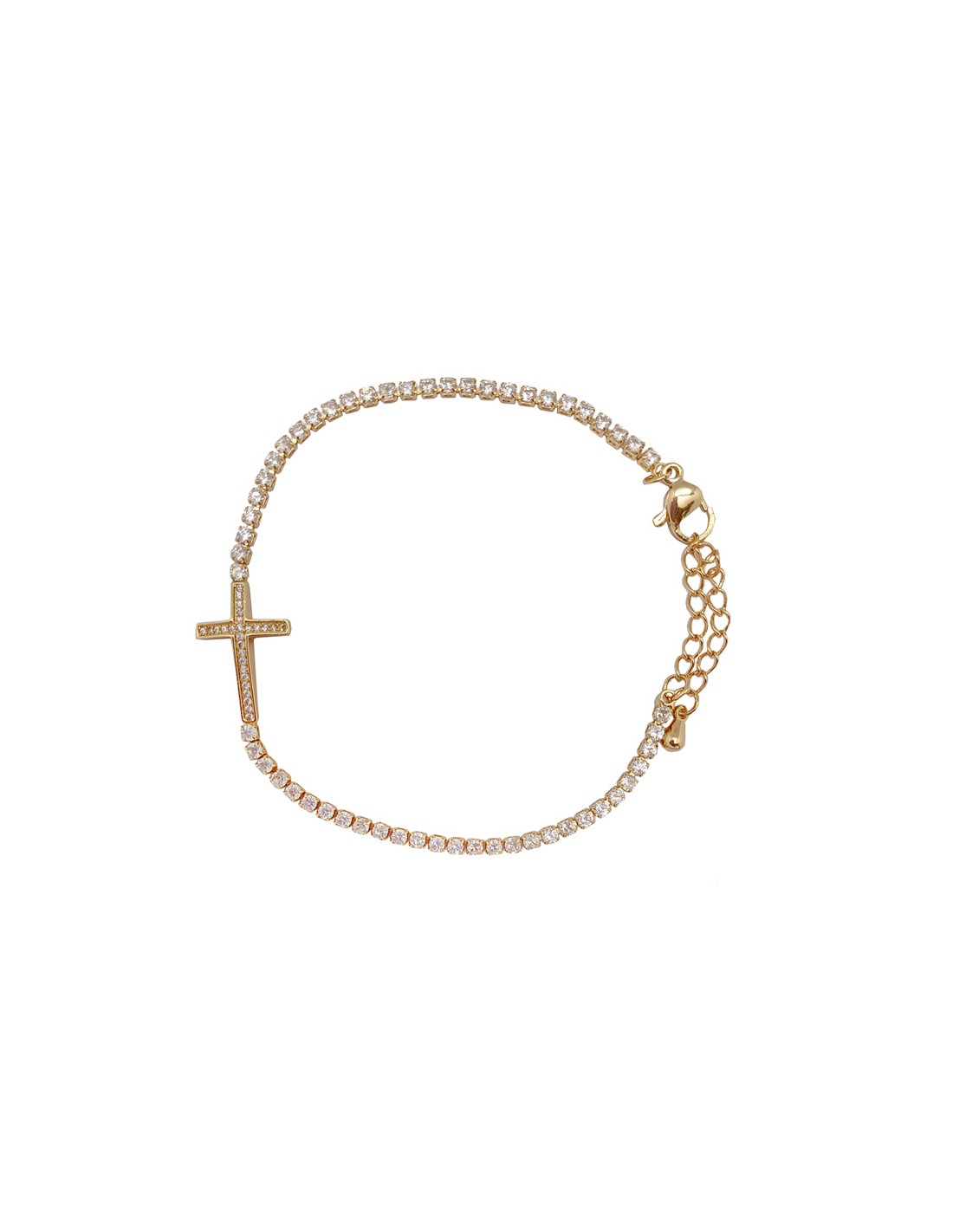 Pulsera Acero Cadena Dorada Con Cristales Y Cruz Con Cristales Al Centro