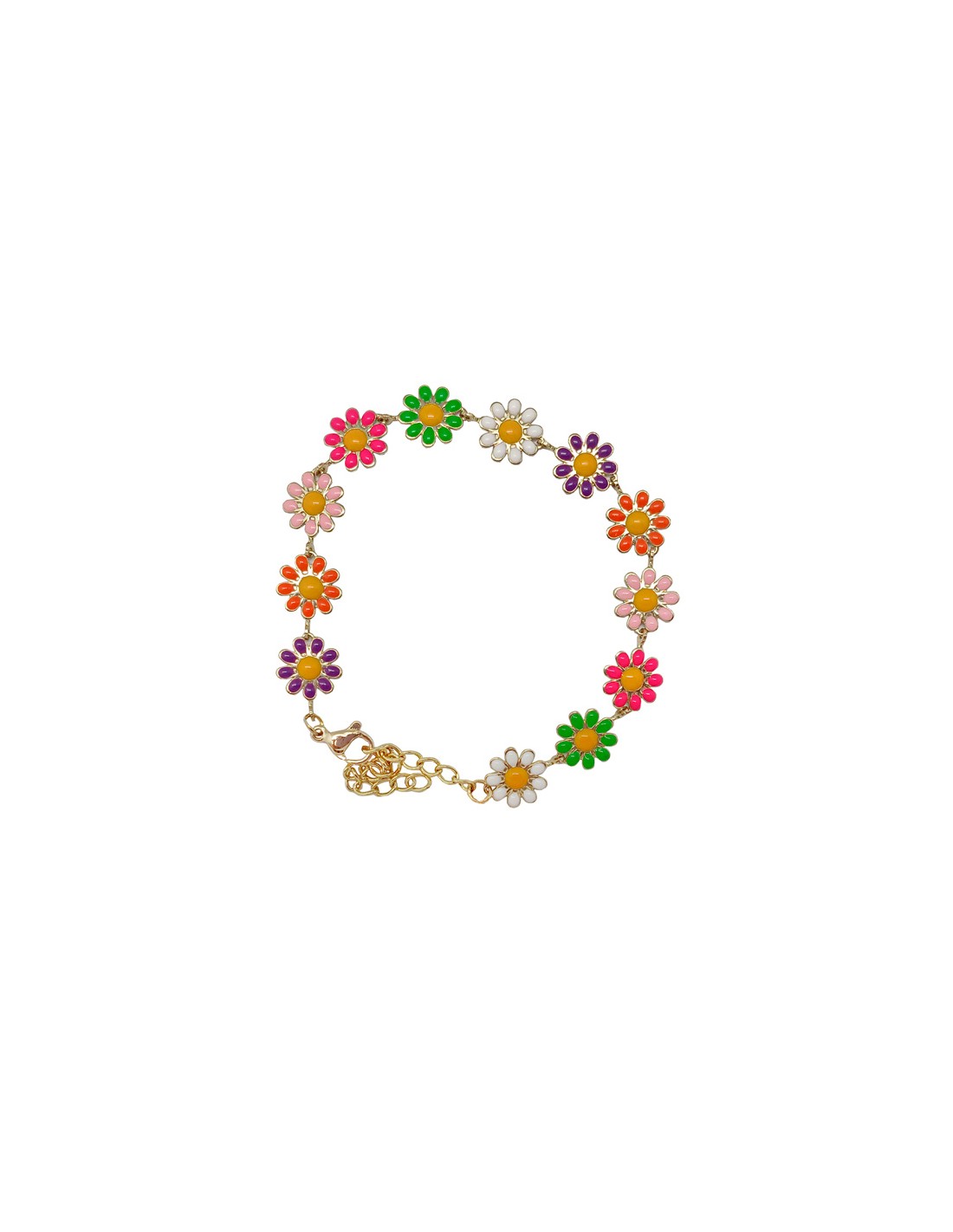 Pulsera Dorada Margaritas Multicolores Esmaltadas