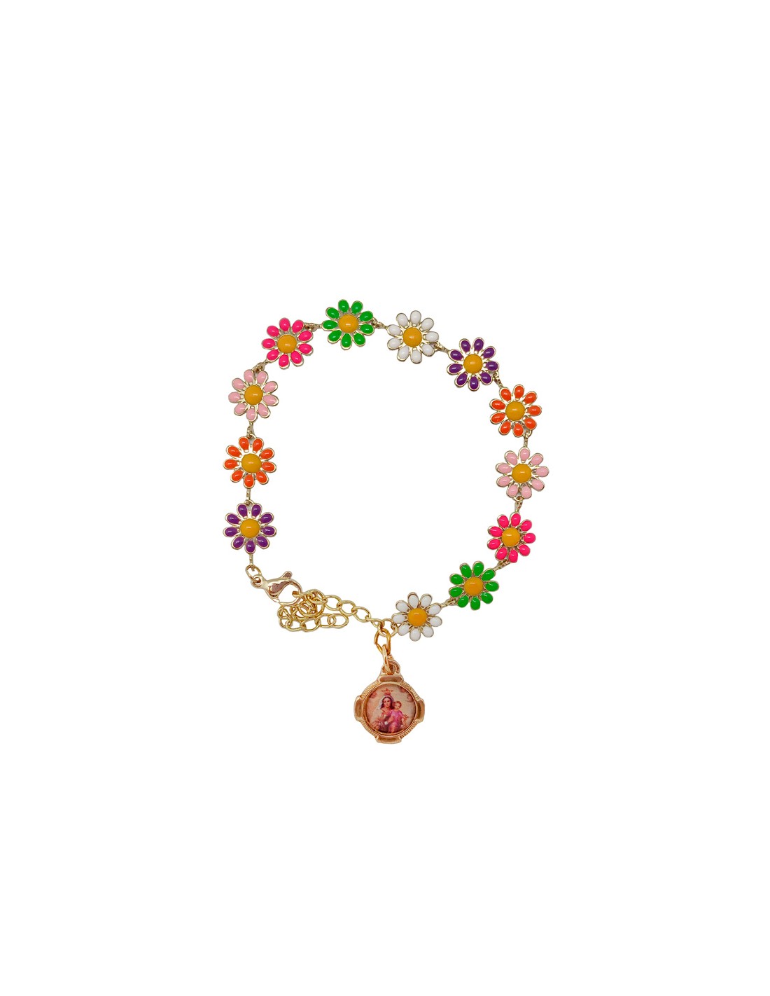 Pulsera Dorada Margaritas Multicolores Esmaltadas