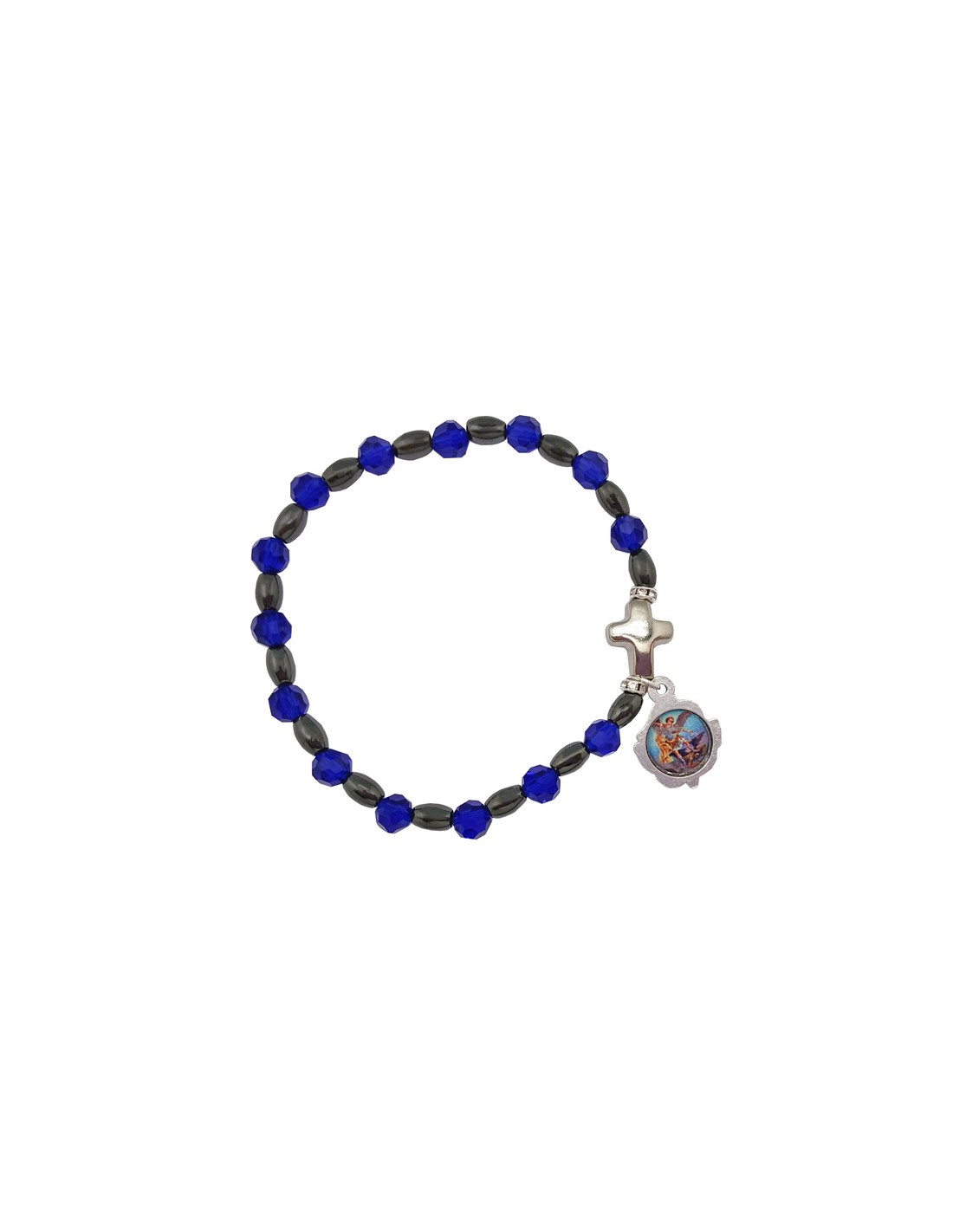 Pulsera Cristal Azul 6Mm Con Ematite Y Cruz