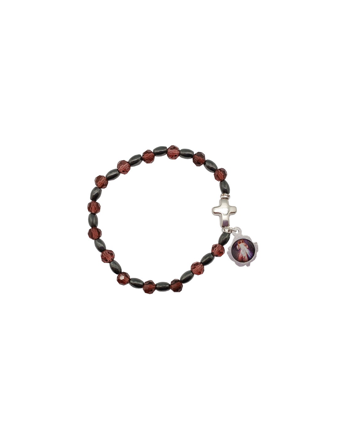 Pulsera Cristal Morado 6Mm Con Ematite Y Cruz