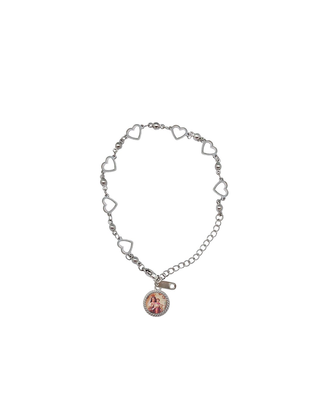 Pulsera Acero Blanco Eslabones Con Corazones Con Bolitas