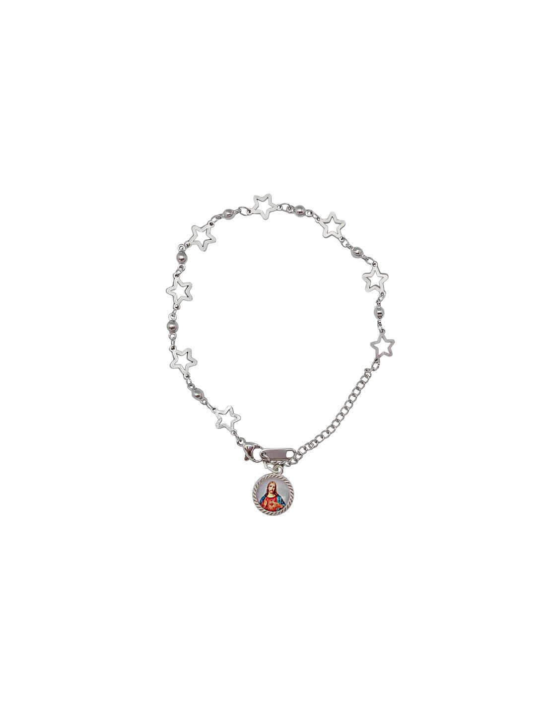 Pulsera Acero Blanco Eslabones Con Estrellas Con Bolitas