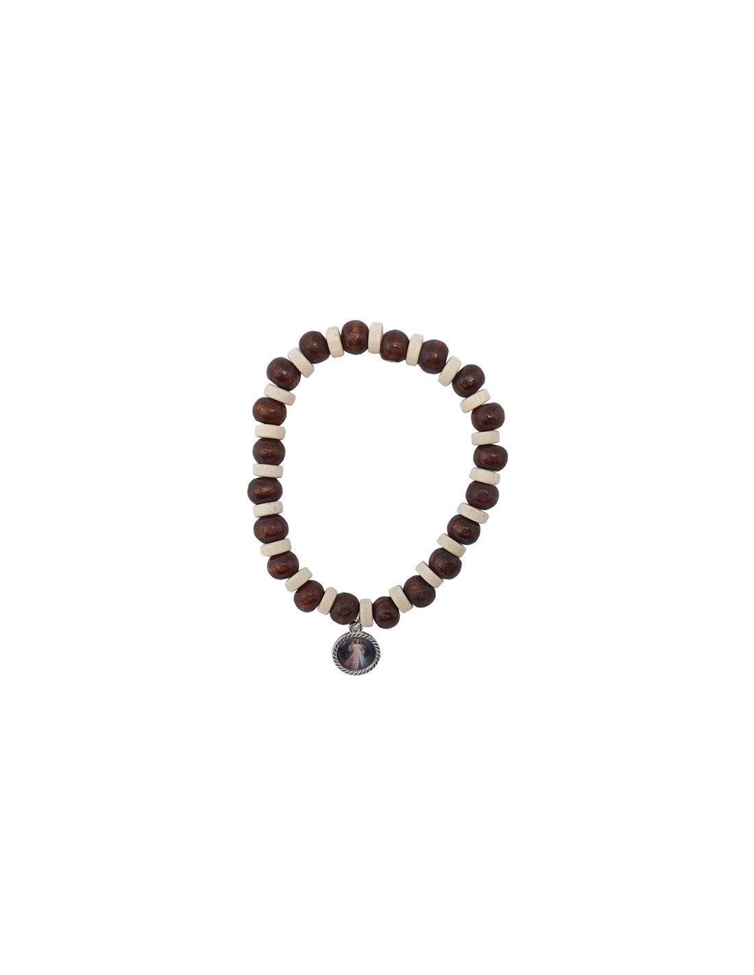 Pulsera Madera Oscuro Elastica 8Mm Con Discos Blancos Alternos