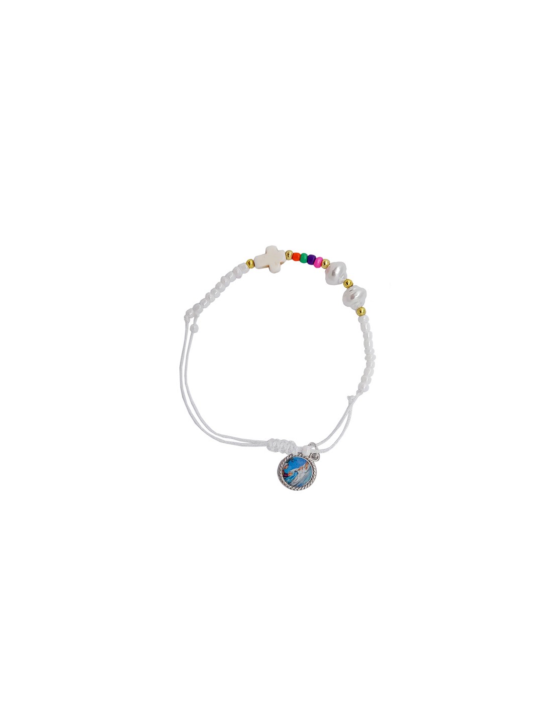 Pulsera Cuerda Bolitas Mini Con 2 Perlas Blancas Y Cruz Varios Colores