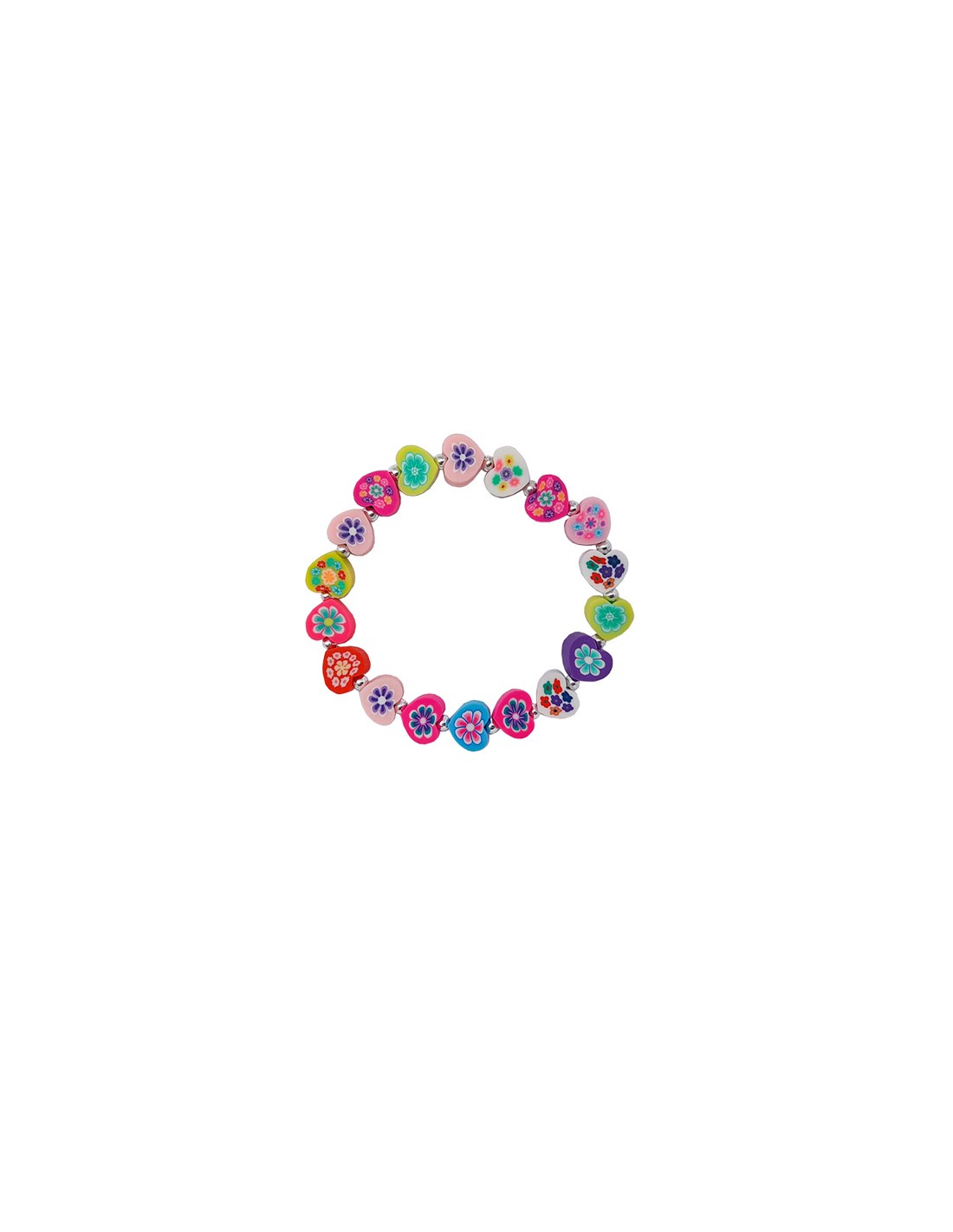 Pulsera Elastica Infantil Corazones Con Bolitas Niquel Mini Multicolor