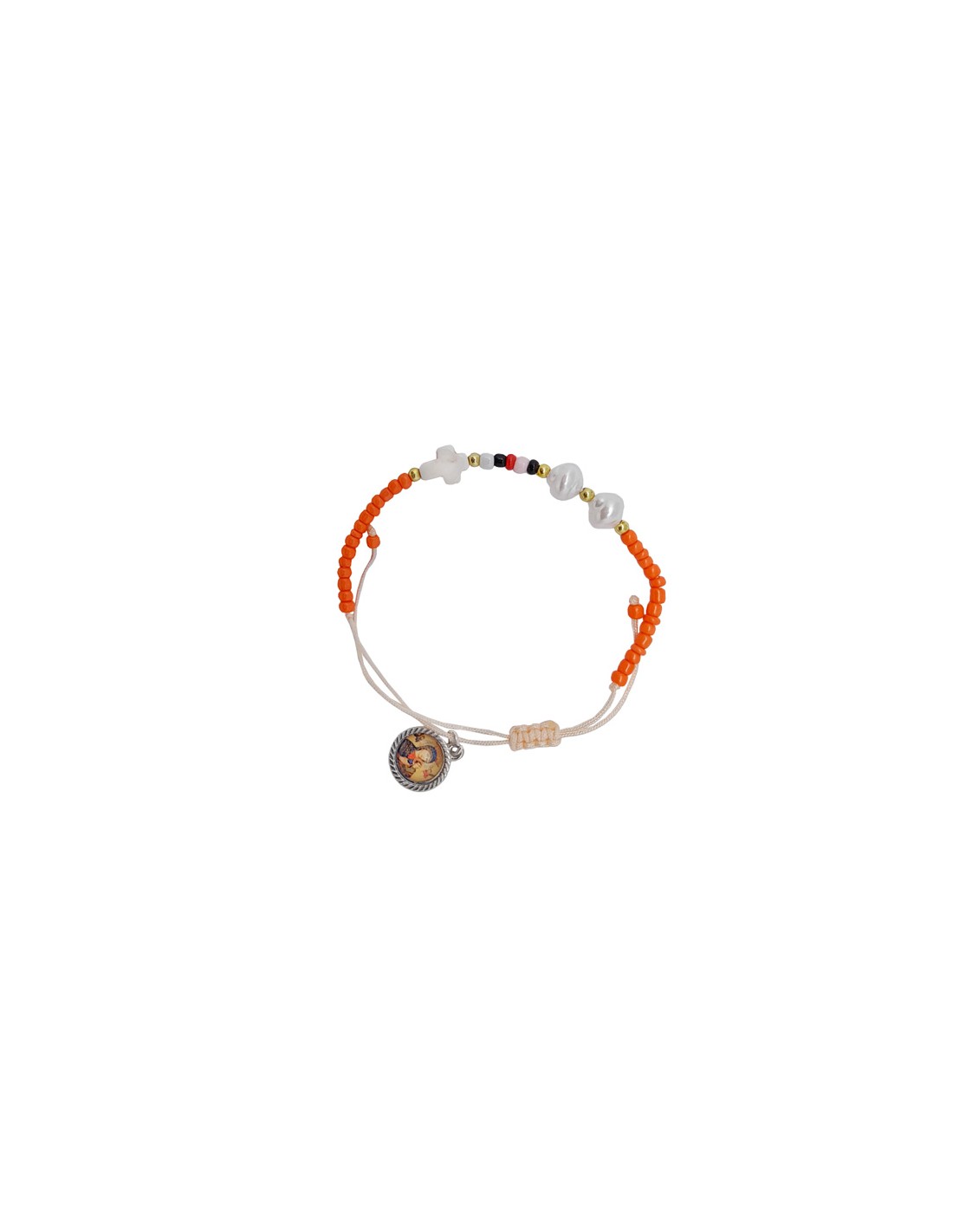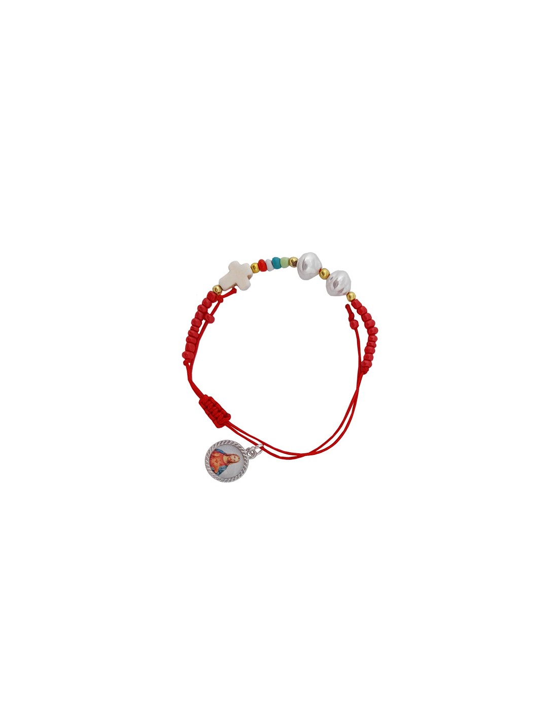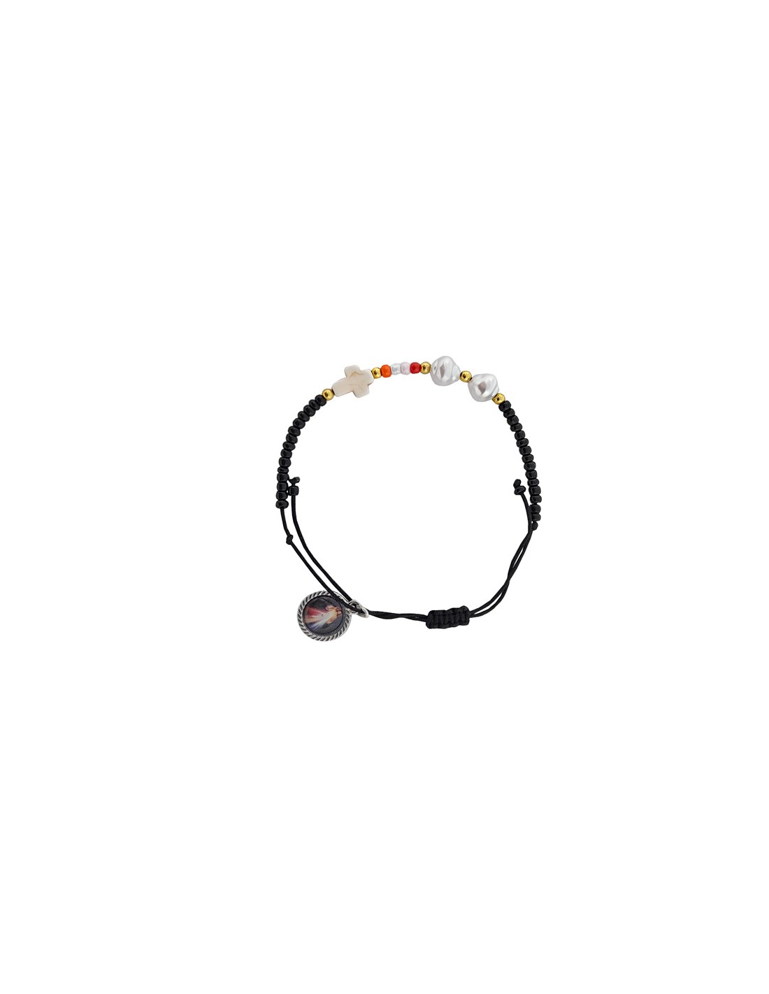 Pulsera Cuerda Bolitas Mini Con 2 Perlas Blancas Y Cruz Varios Colores