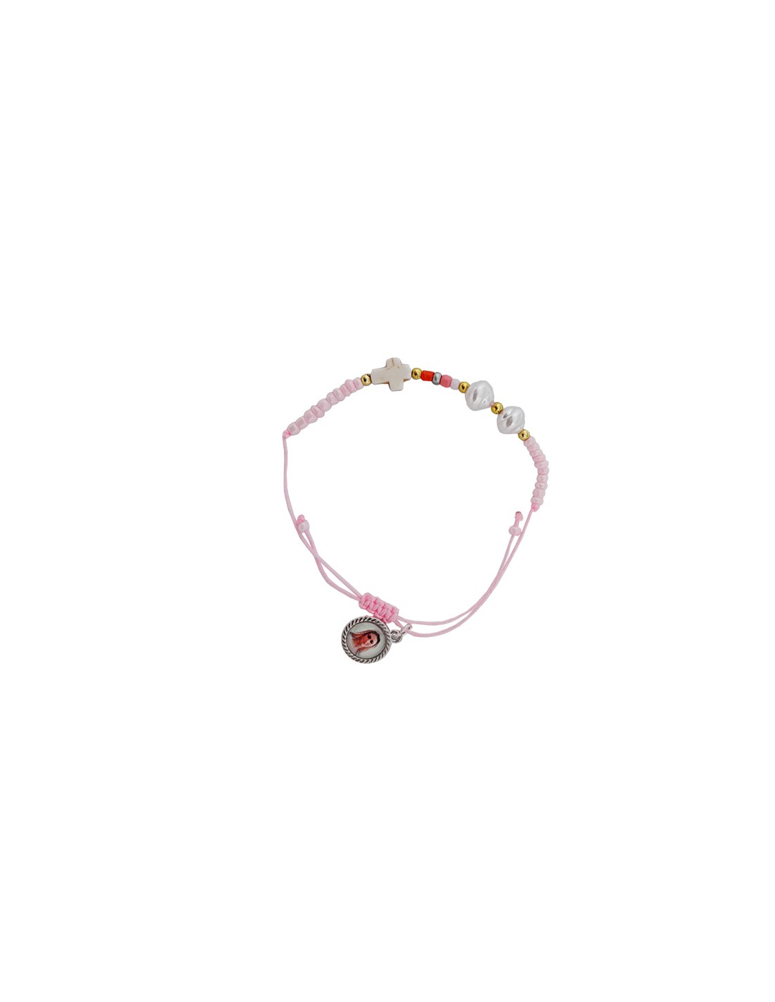 Pulsera Cuerda Bolitas Mini Con 2 Perlas Blancas Y Cruz Varios Colores