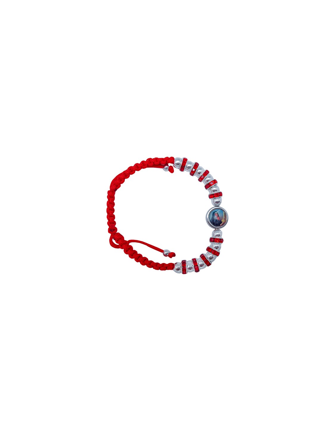 Pulsera Cuerda Roja Con Discos Crital Rojo Y Bolitas Niqueladas