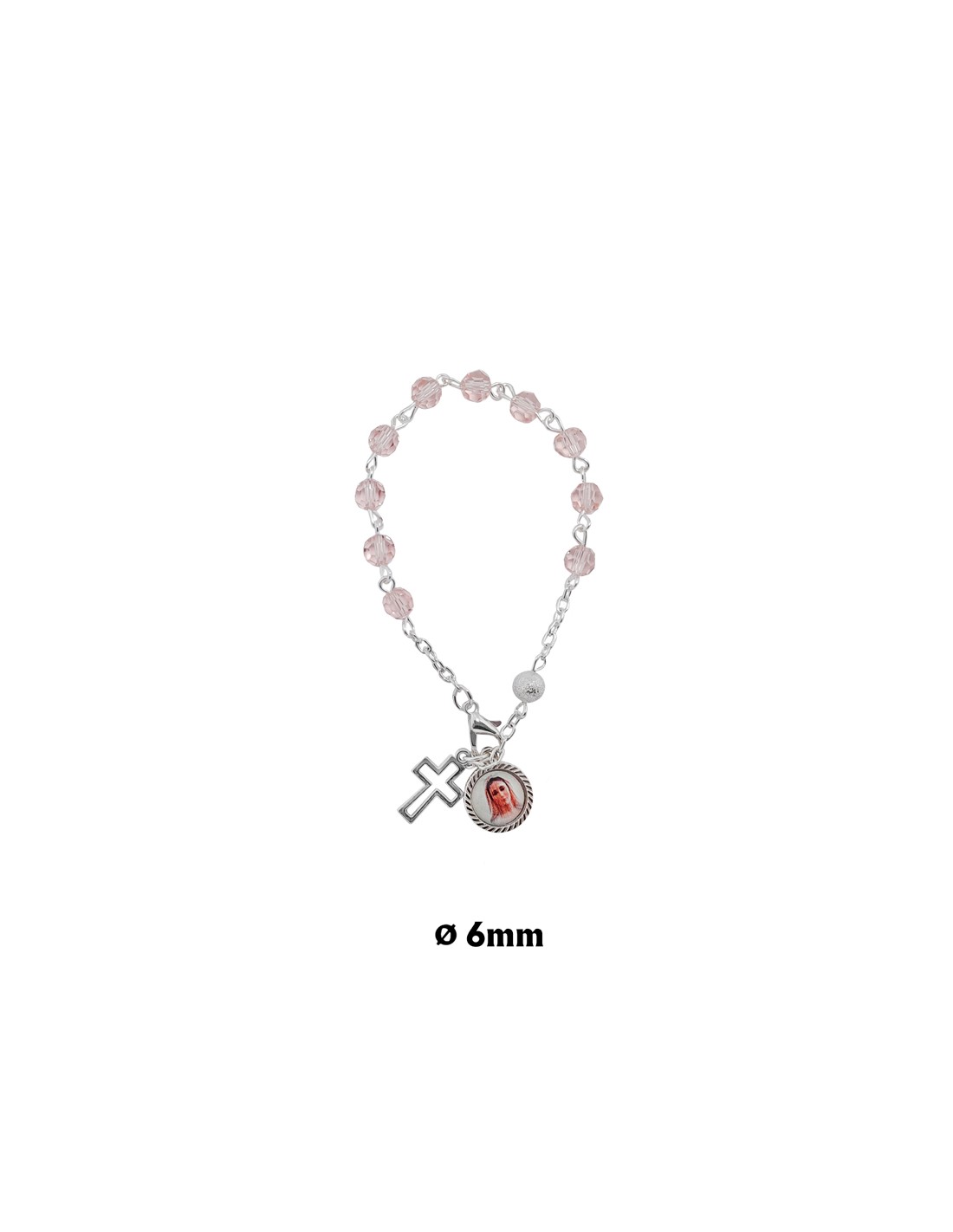 Pulsera Brazalete Cristal Rosa 6Mm Tallado Con Pater Metalico Punteado