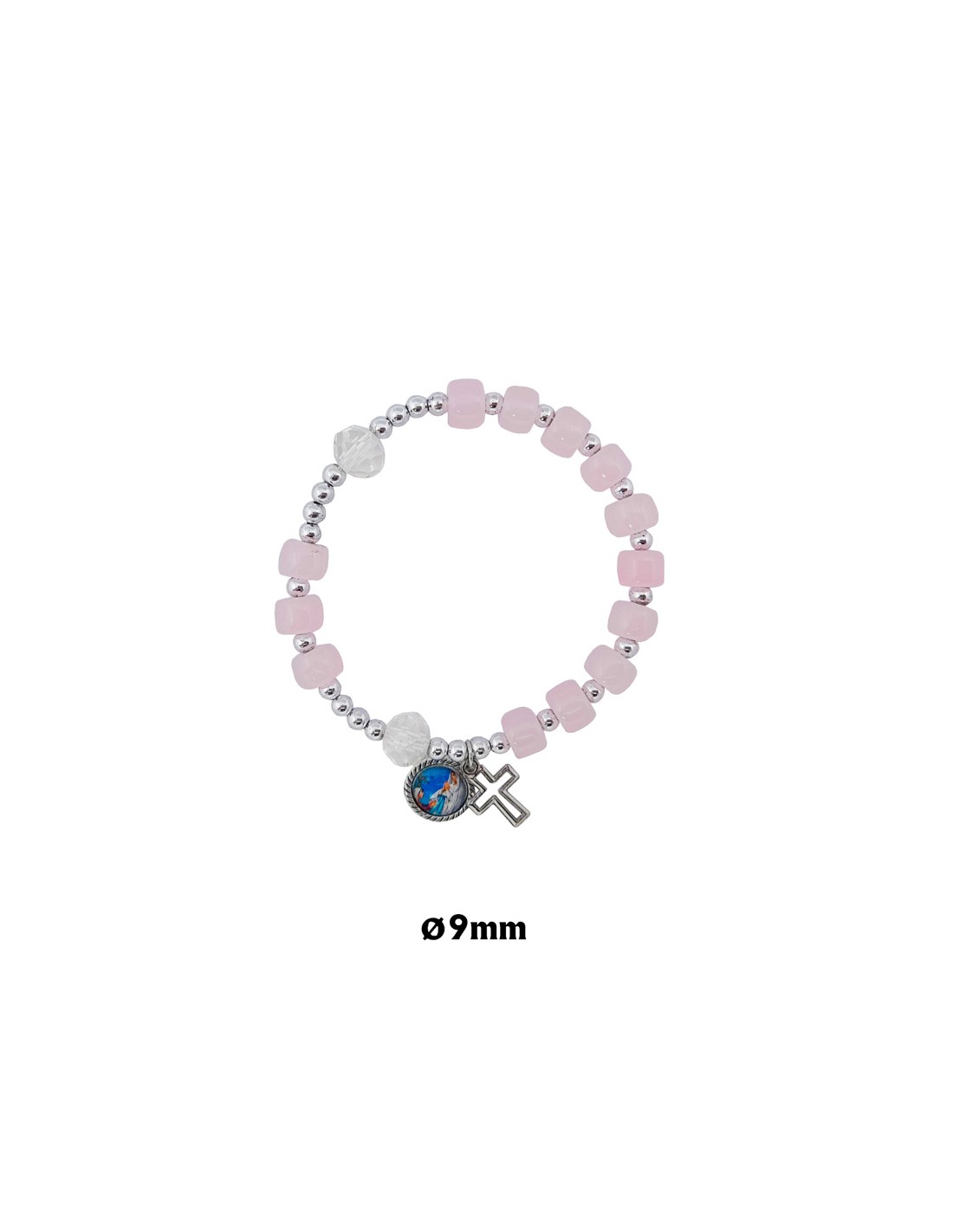 Pulsera Elastica Rosa 8X6mm Paters Trasparentes Tipo Rosario