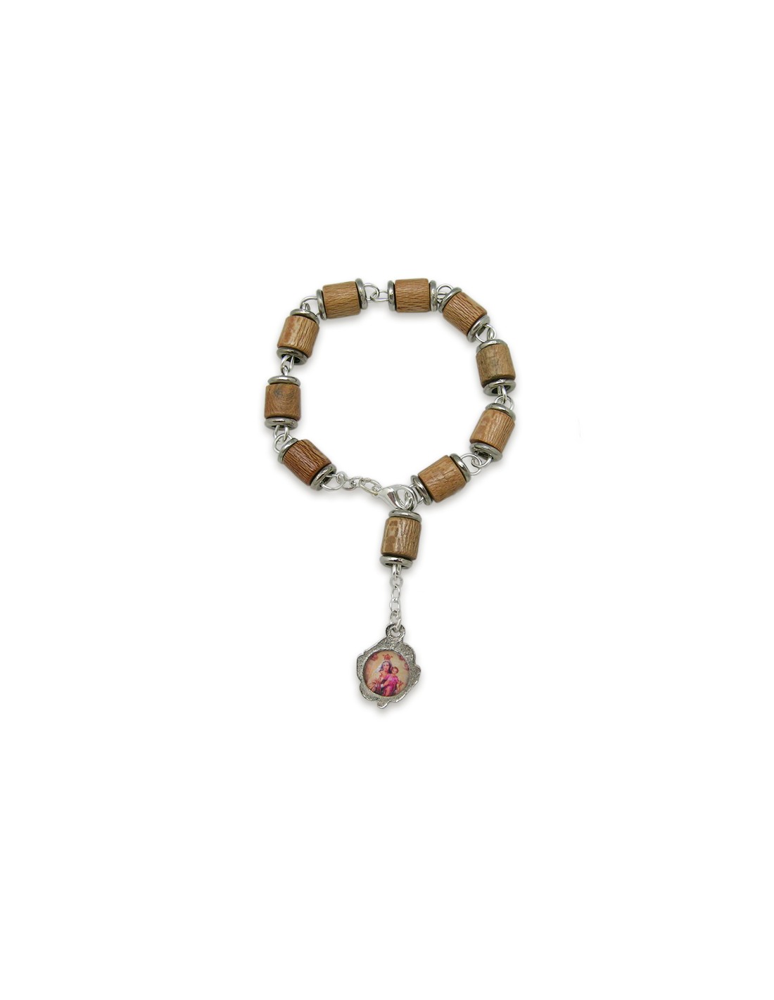 Brazalete Madera Clara Cilindro Con Anillos Metal 8X10mm