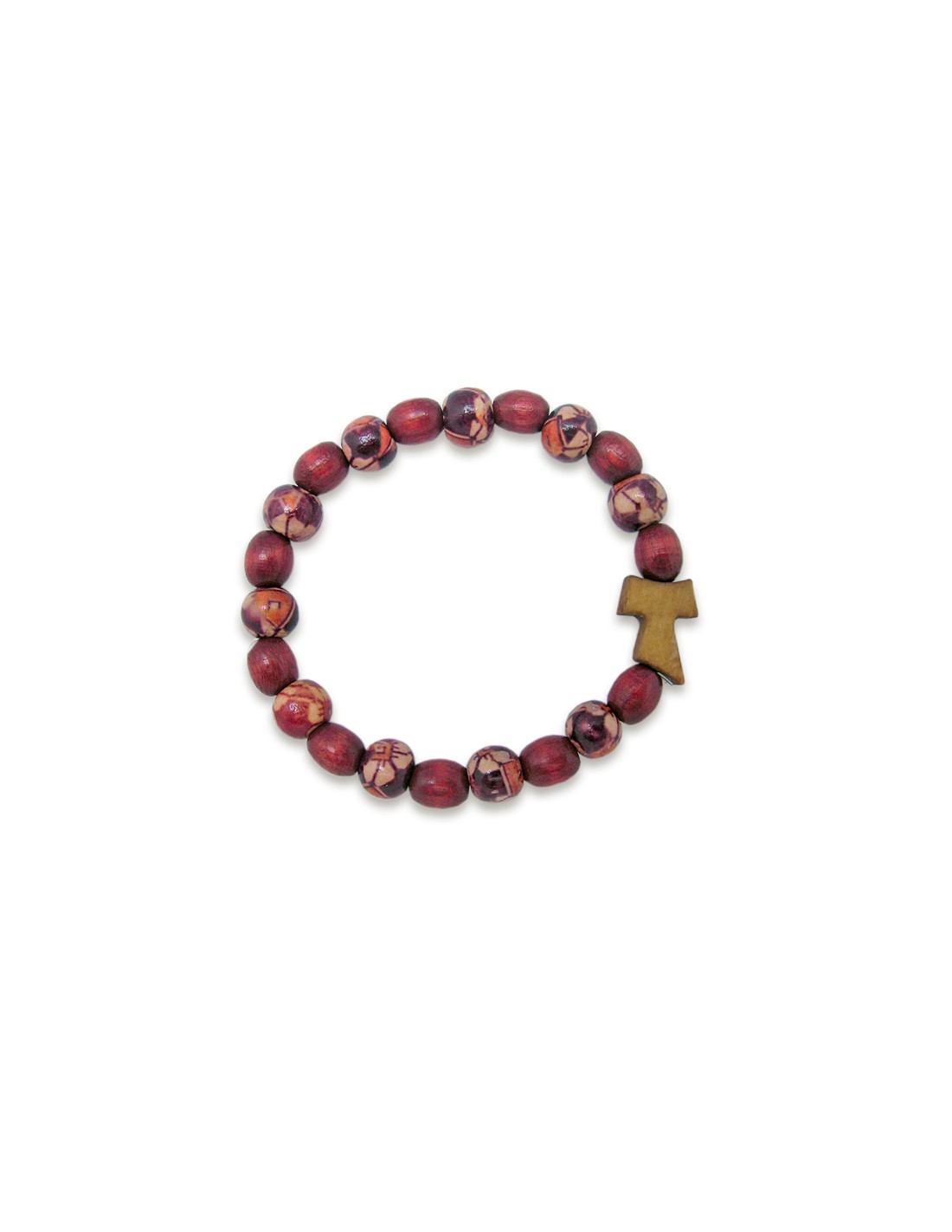Pulsera Elastica Madera 8Mm Pintada Flores Con Cruz Tau