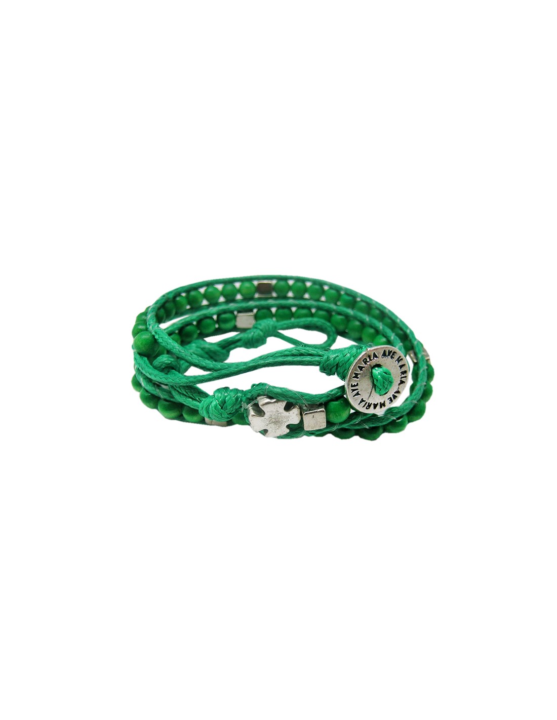 Pulsera Rosario Madera Verde Bola Cubo 5Mm Doble Vuelta Bot n Ave Maria Y Cruz