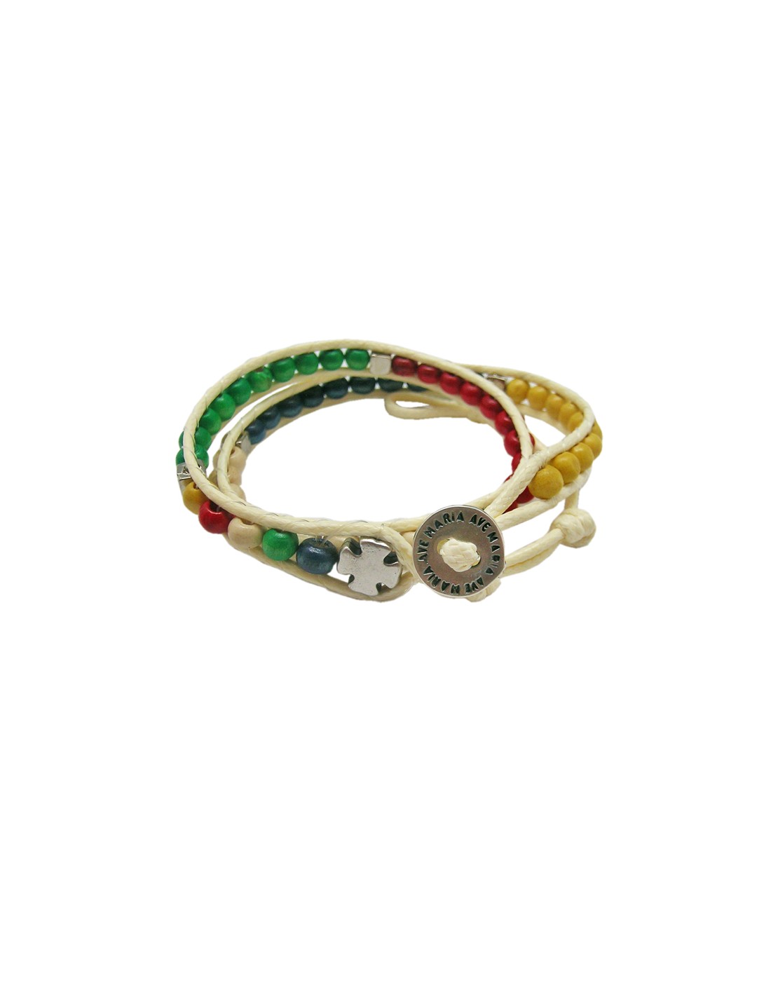 Pulsera Rosario Madera Misionera Bola Cubo 5Mm Doble Vuelta Bot?n Ave Maria Y Cruz